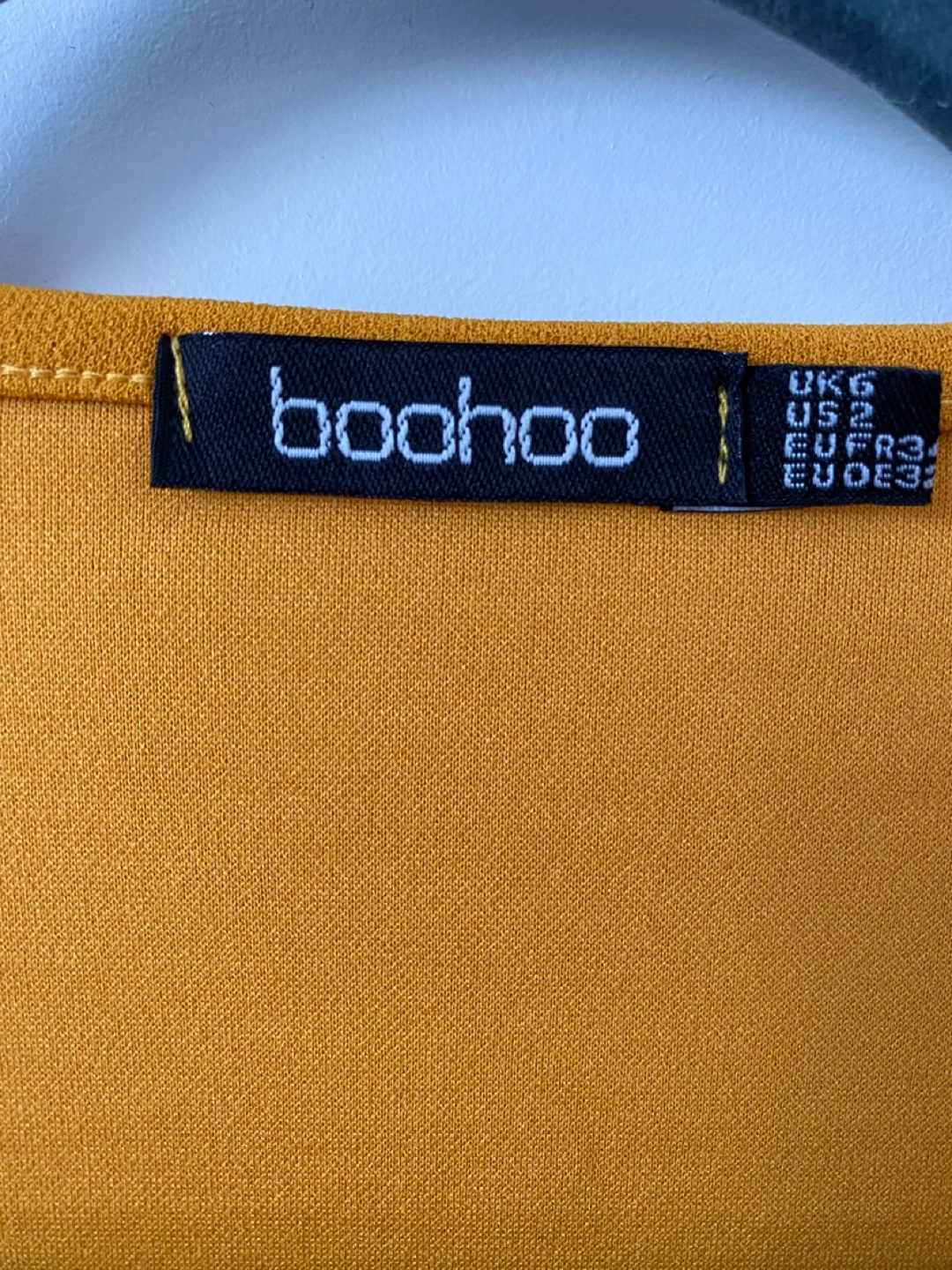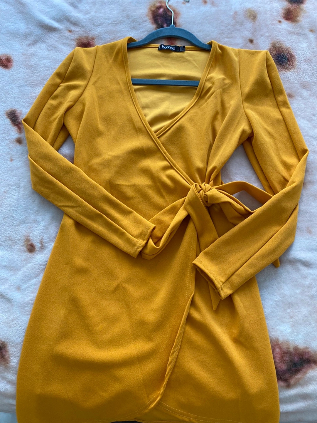 Boohoo Mustard Yellow Wrap Mini Dress Size UK 6