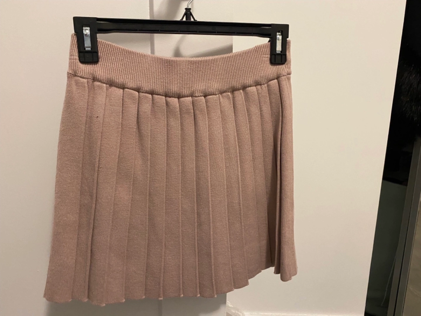 Dynamite mauve knit pleated mini skirt. Pleated design. Knit material. Elastic waistband. Fits a little big on my body and I’m usually an xs. Price negotiable, and open to bundling/offers. Dm for more photos!