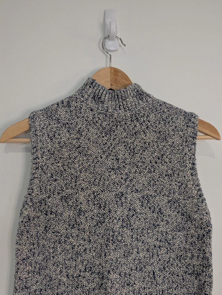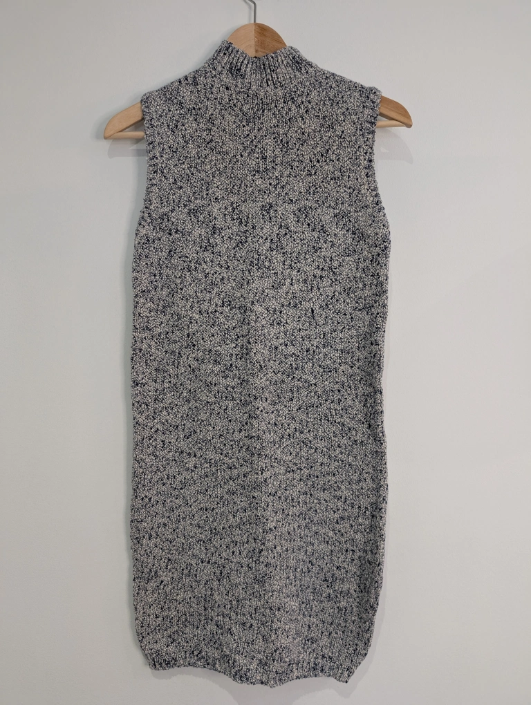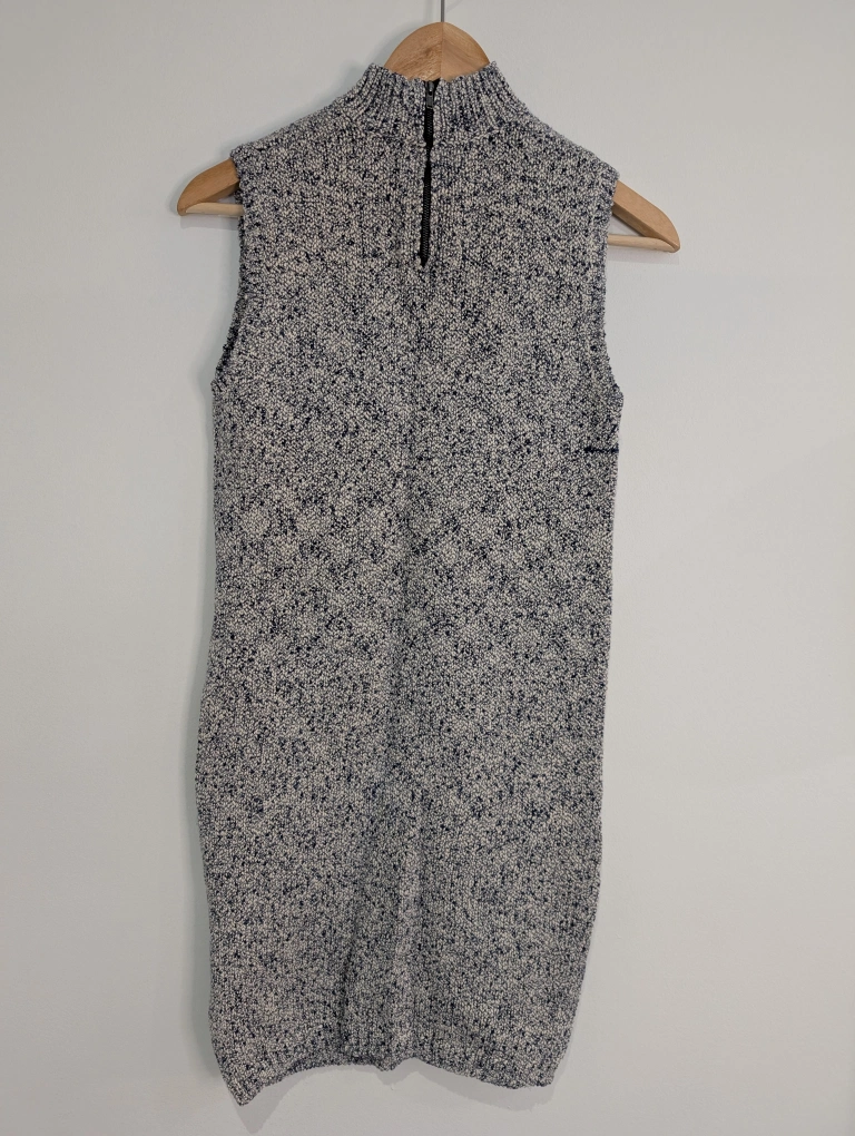 694Babaton Navy & Cream Cozy Knit Sleeveless Sweater tunic dress size 2 (would fit xs) p2p 17.5" waist 15.5" hip 16-19" length 33" Soft and stylish sleeveless knit sweater dress. Perfect for layering or wearing on its own