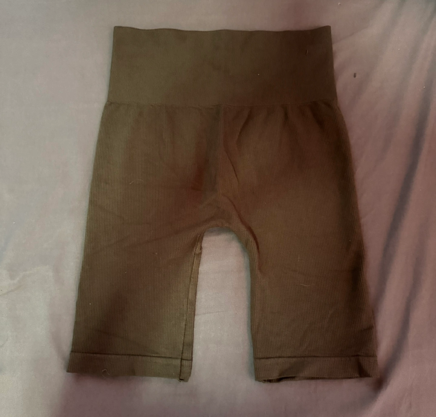 High-waisted seamless bike shorts. Ribbed fabric. Dark olive green colour. Great for working out or casual wear.