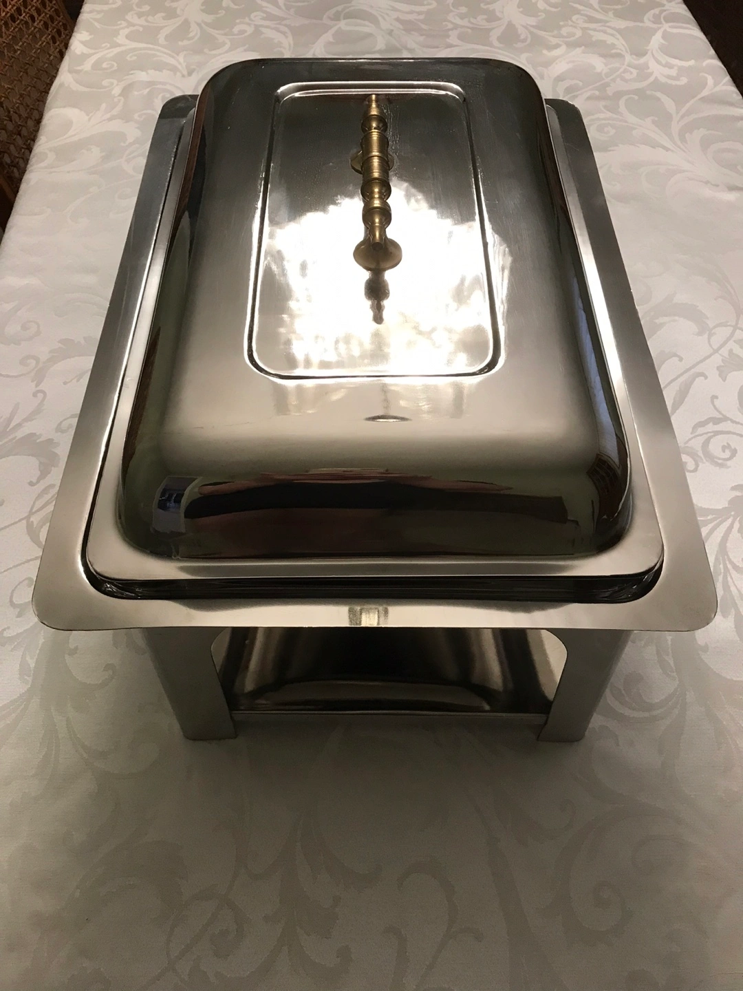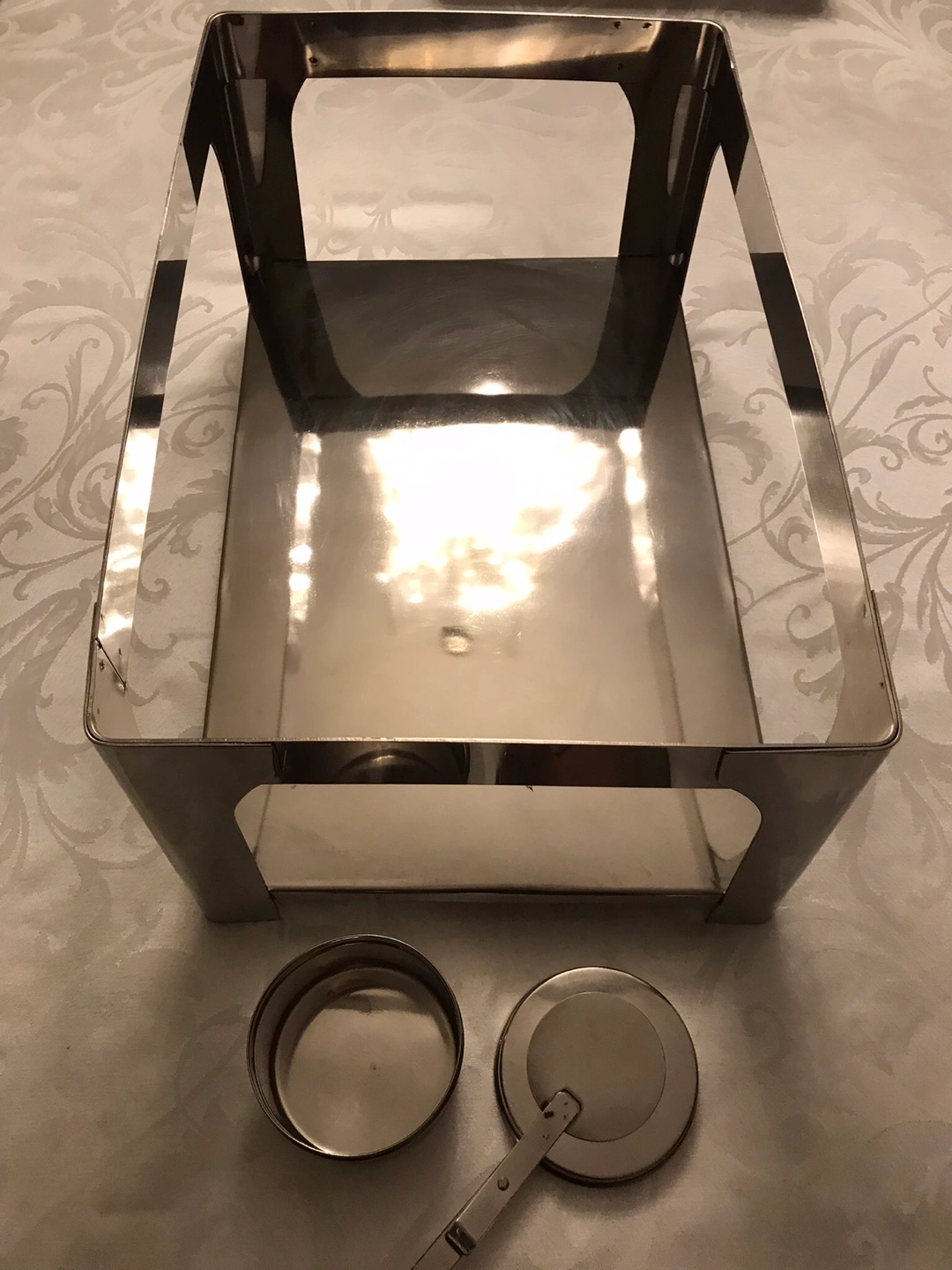 It’s time to prepare for party season !!! These are so handy you’ll wonder how you lived without them !!!Full size chafer dish made of heavy duty polished stainless steel. Six pieces: rack, fuel container with lid, full-size food pan, full-size water pan and lid. Easily holds 8 quarts (32 cups) of food suitable for hot or cold using the burner for the warm water bath or cold by putting ice water in the water pan.