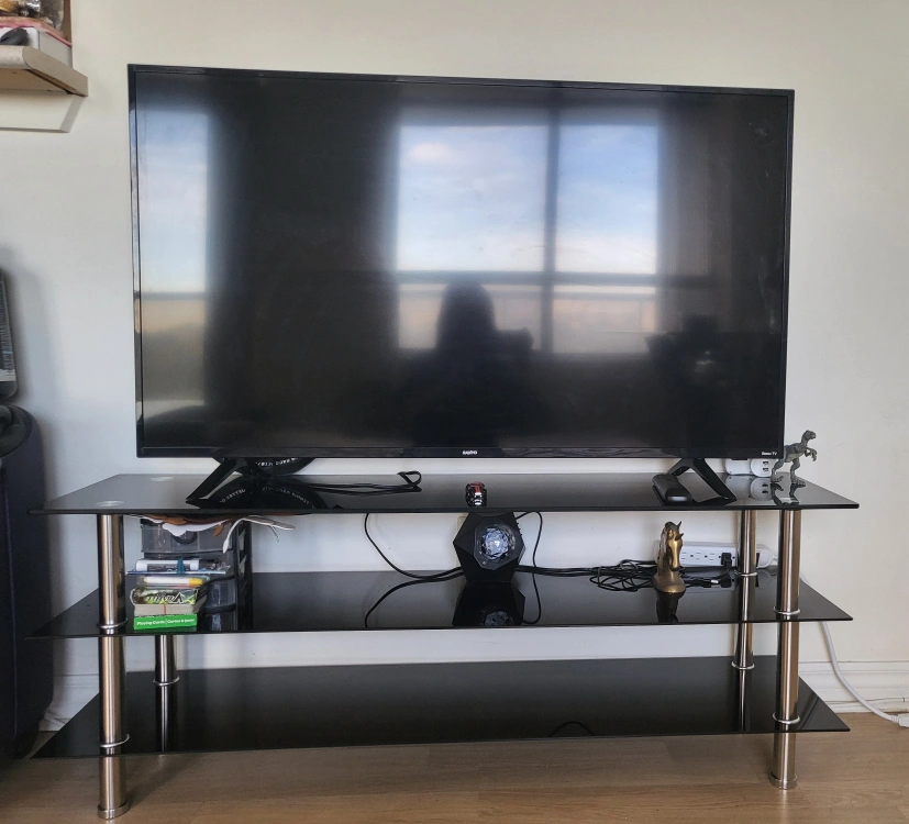 Excellent condition. Black glass TV stand.