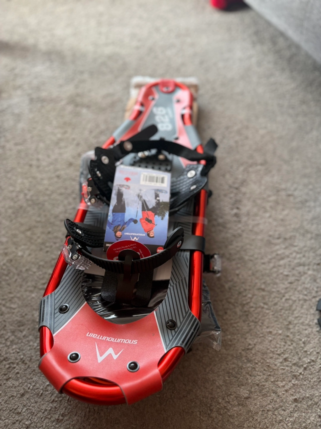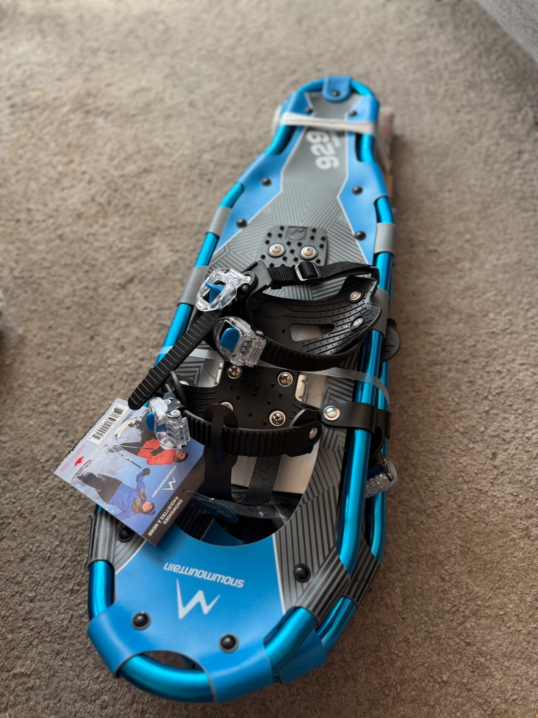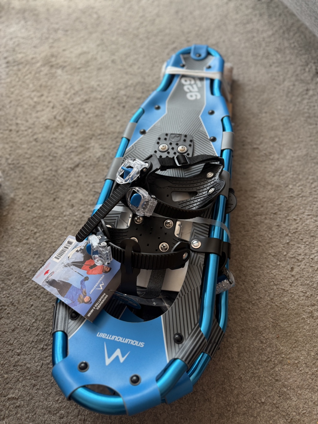 Pair of adult snowshoes. Lightweight aluminum frame.