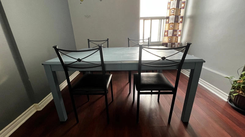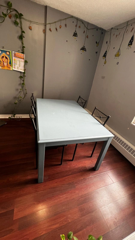 In good condition-Tabletop shows minor wear of paints - previous owner painted the black table to blue.