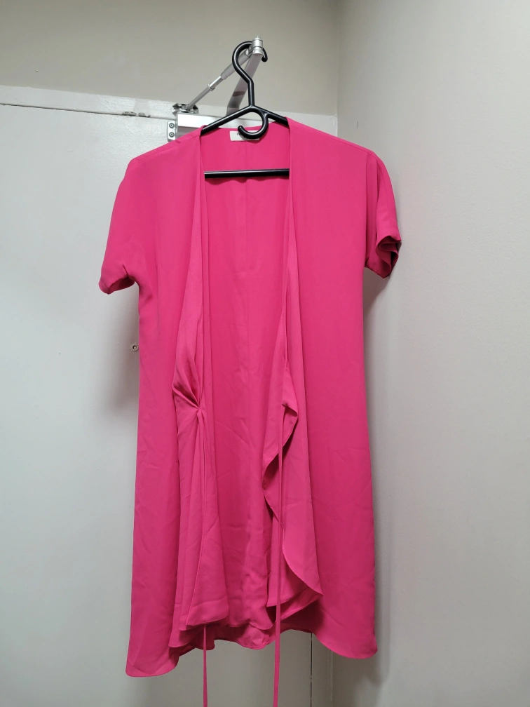 Hot pink wrap mini dress. Short sleeves. Self-tie closure. Excellent condition.