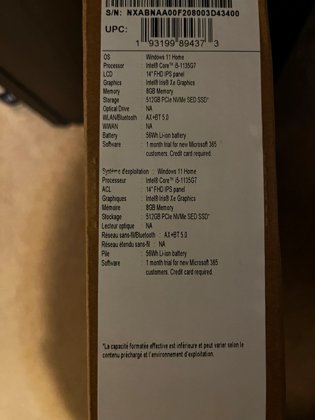 Intel Core i5-1135G7 processor.