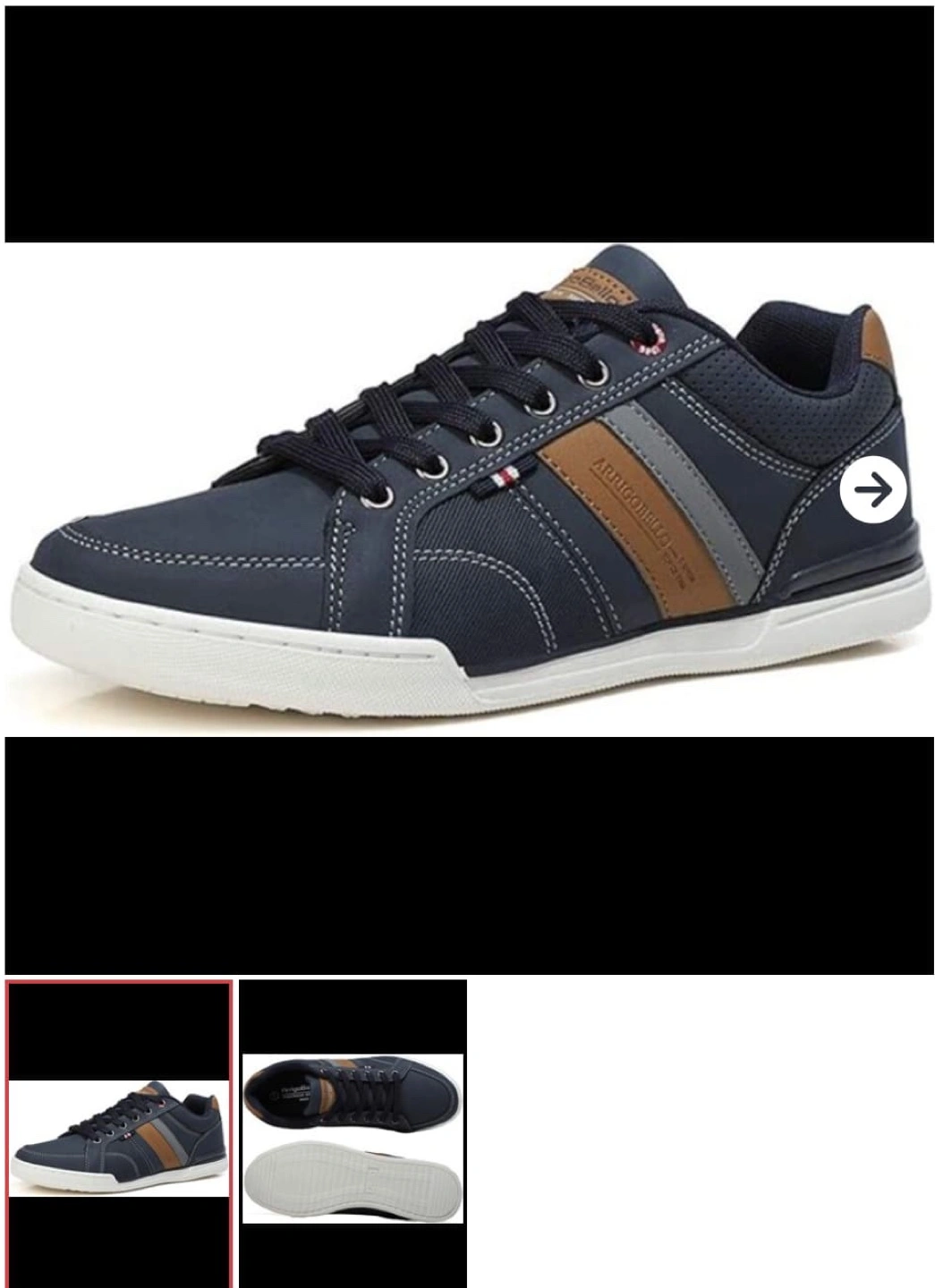 Men's navy blue casual sneakers. Lace-up closure. Features brown and grey accents. Comfortable design. Great for everyday wear.