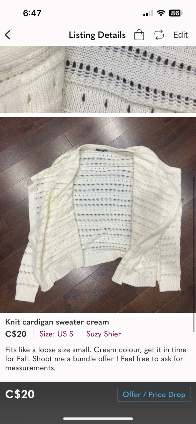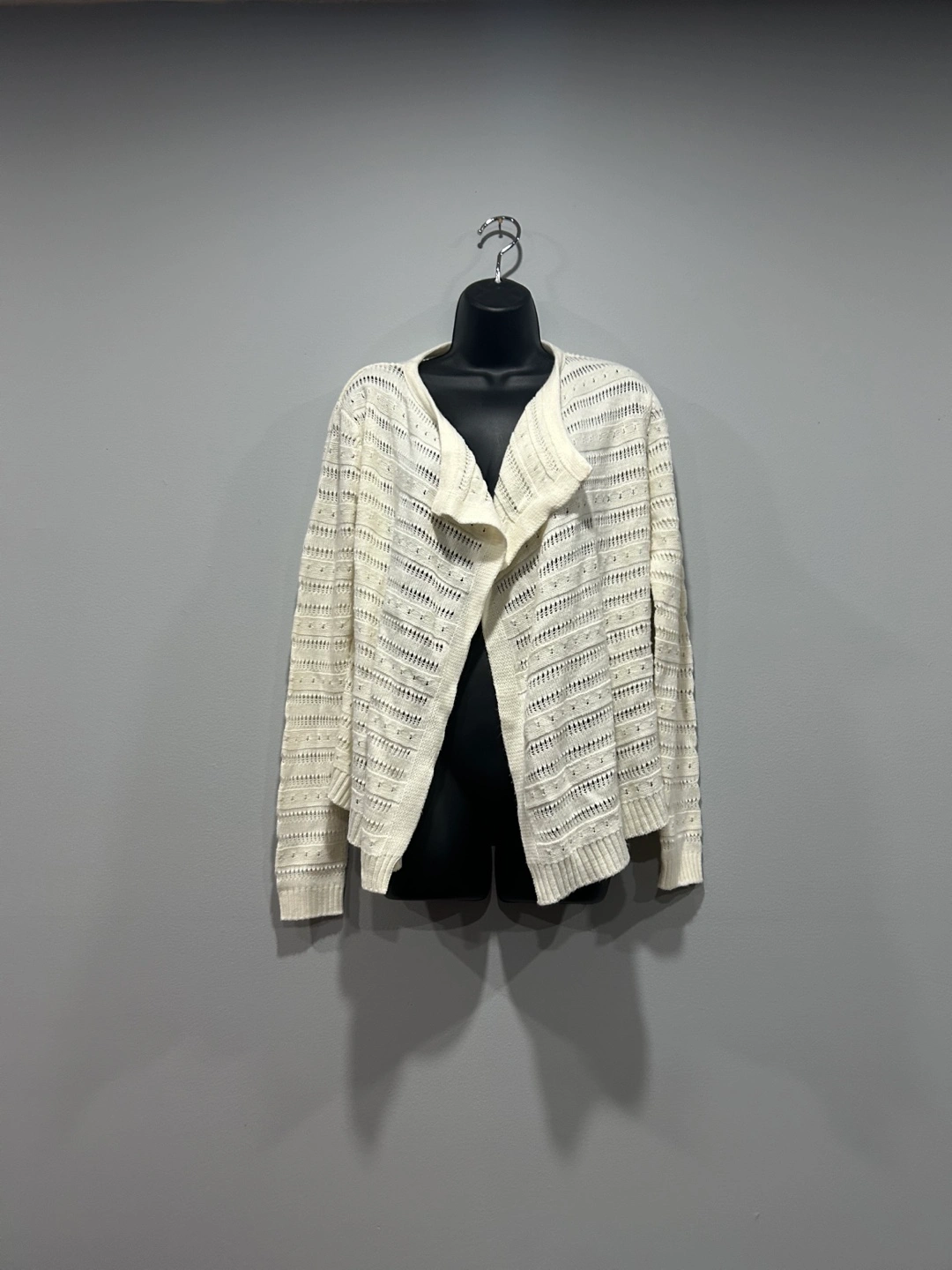 Fits like a loose size small. Open front with waterfall effect. Cream colour, beautiful sweater. Shoot me a bundle offer ! Feel free to ask for measurements.