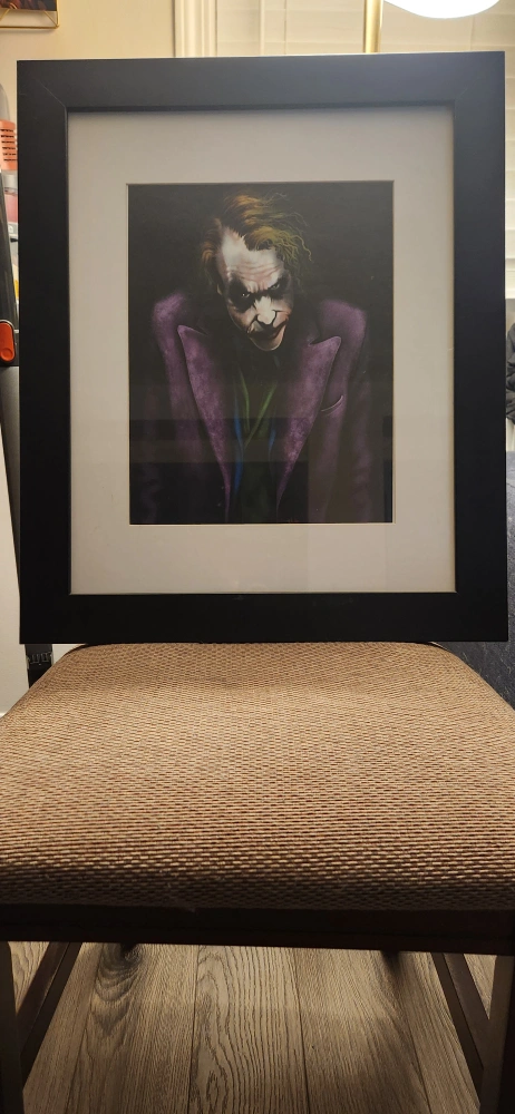 beautifully framed and matted depiction of the best rendition of the "Joker" character played by heath ledger
