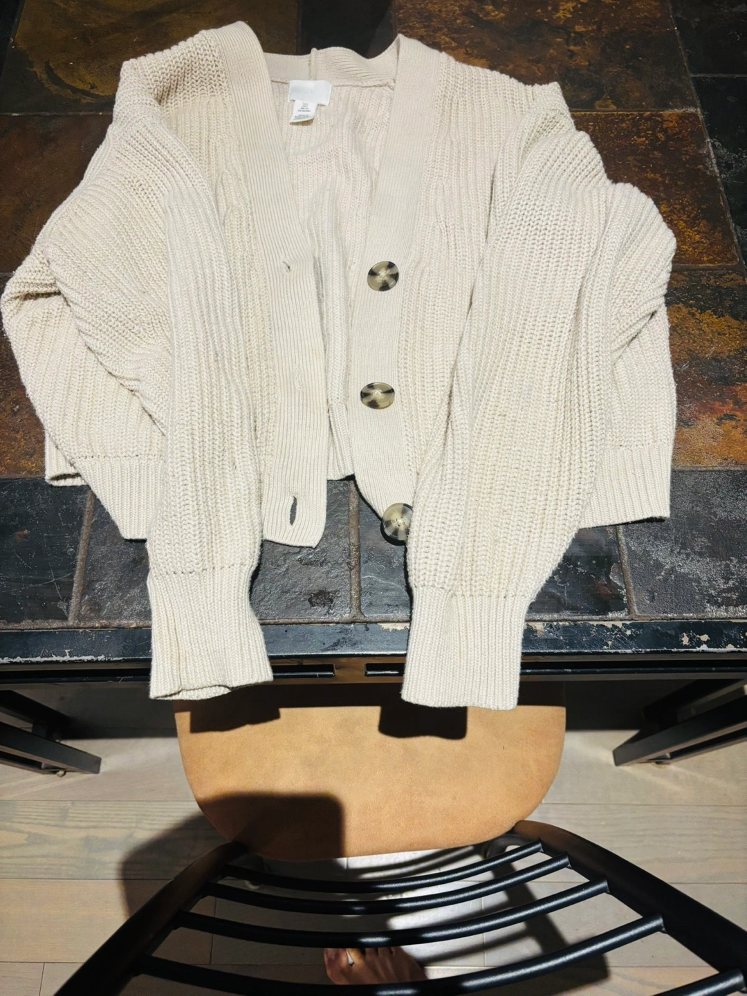 H & M Cream-coloured cropped cardigan