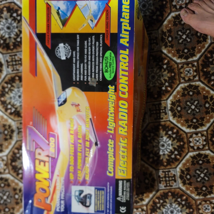 Complete lightweight airplane. Powered flight at your fingertips. Requires small space for takeoff and landing. Easy to fly. Includes pre-installed 2-channel, proportional RC controls with battery holder & 4.8V rechargeable battery pack. Includes digital proportional speed control. with the original packaging
