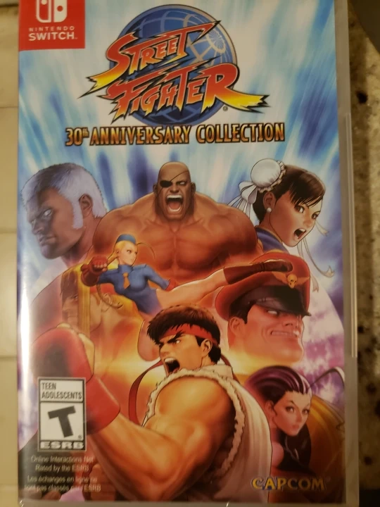 Street Fighter 30th Anniversary Collection for Nintendo Switch. Features 12 classic games. Online multiplayer supported. Rated T for Teen.