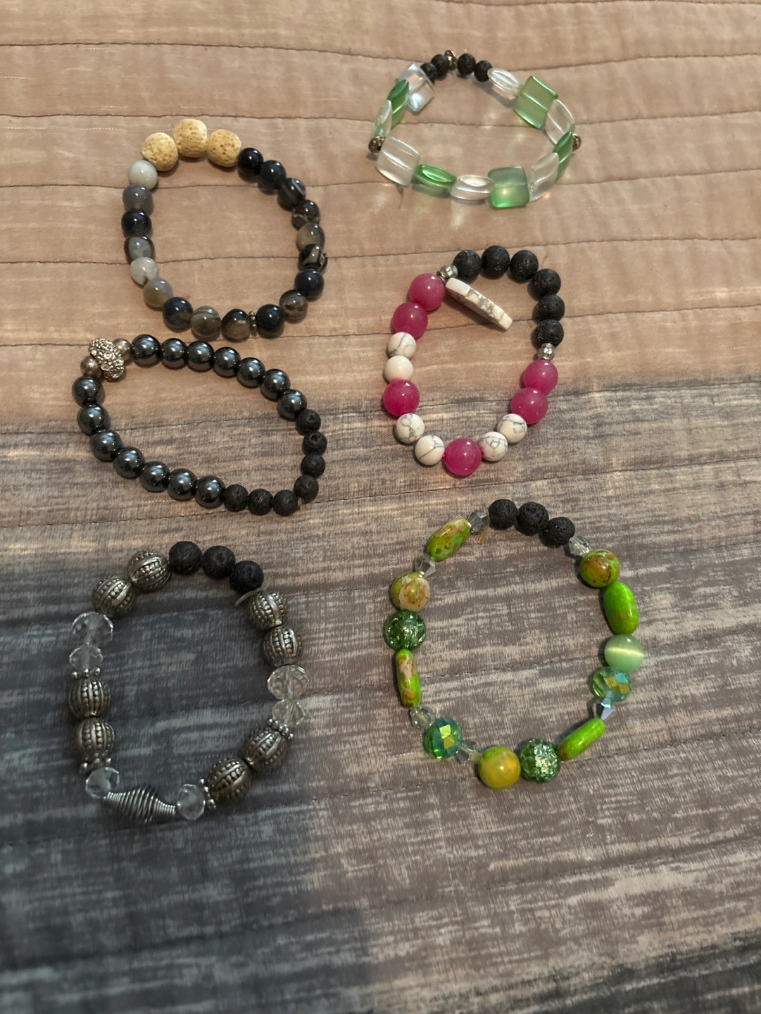 Set of 5 essential oils bracelets. Various colours and stones. Lava rock accents. Unique styles… $8 each or 2/$14… or make a fair offer for all six bracelets… *pick up on Chander Drive in Chicopee area Kitchener N2A4H8.