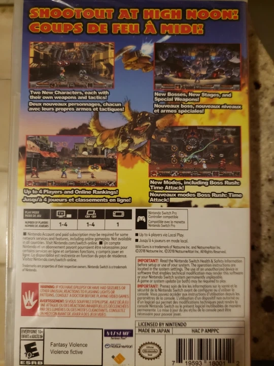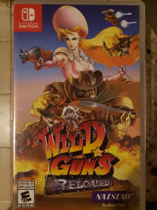 Nintendo Switch game. Wild West themed shooter. Includes new characters, bosses, stages, and weapons. Supports up to 4 players. Online rankings available.
