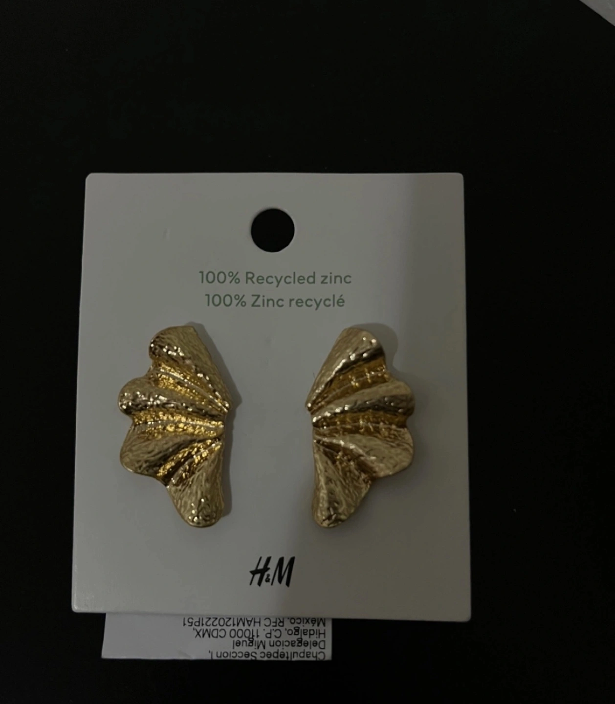 Gold-tone shell-shaped earrings. Made of 100% recycled zinc. New with tags.