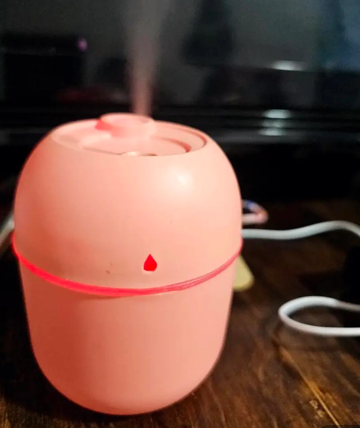 Compact and cute humidifier. Perfect for small spaces. Includes USB charging cable. Great for adding moisture to the air.