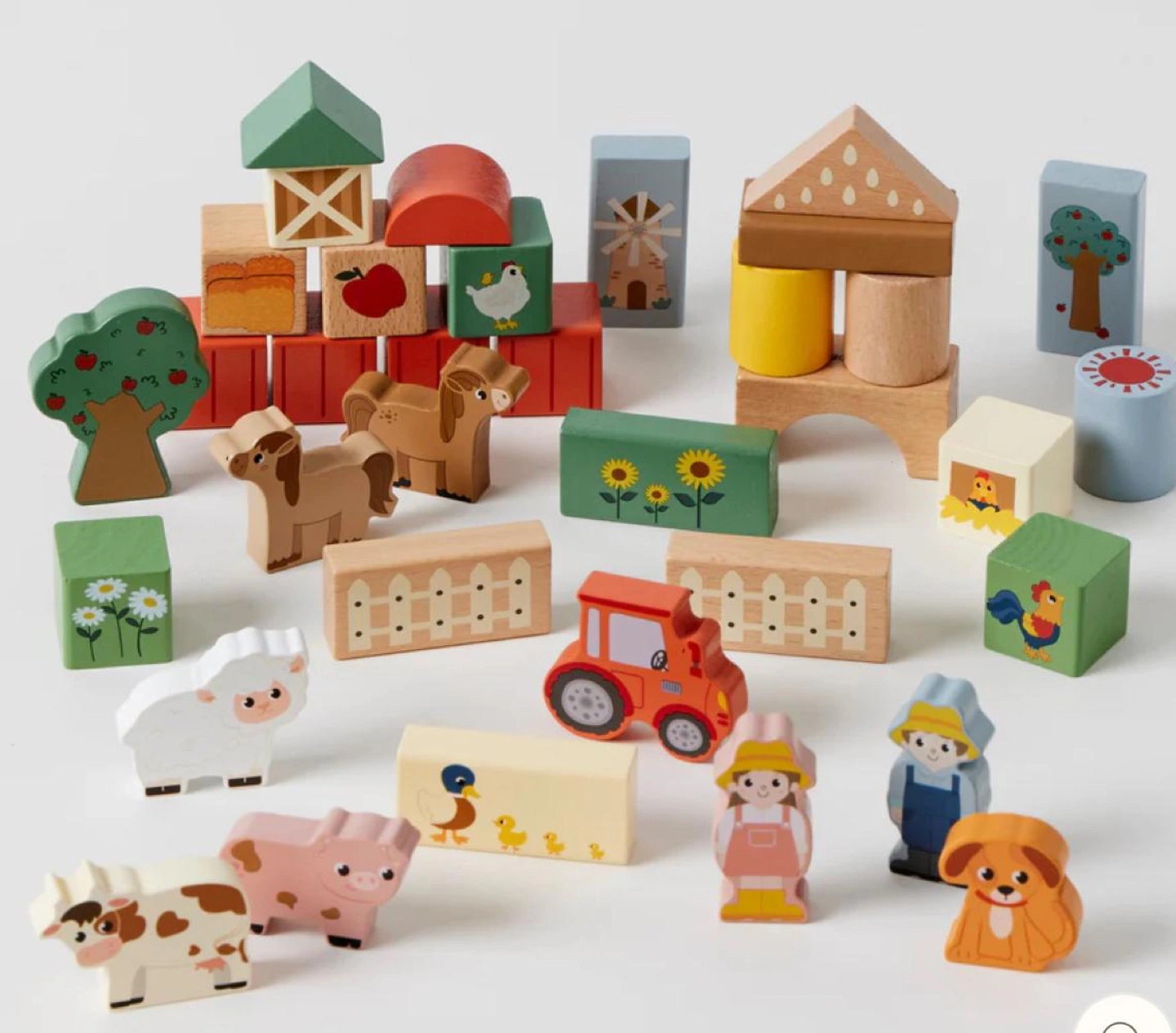 115Price is negotiable. Completely sealed and brand new. Beautiful wooden farm animal play set, made from 100% FSC-certified wood, ensuring sustainability and eco-friendliness. Includes colorful, high-quality pieces such as animals, a tractor, farm buildings, trees, and fences. Perfect for imaginative play and helping kids develop motor skills and creativity. In excellent condition, comes from a smoke-free, pet-free home. Includes 36 wooden pieces Blocks Approx 3xm x3cm Brand Zookabee