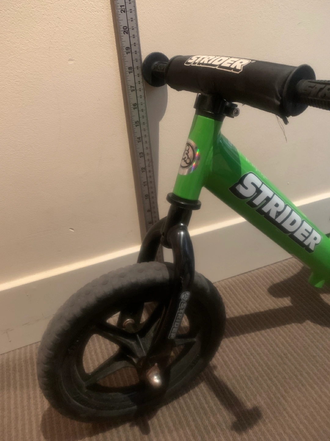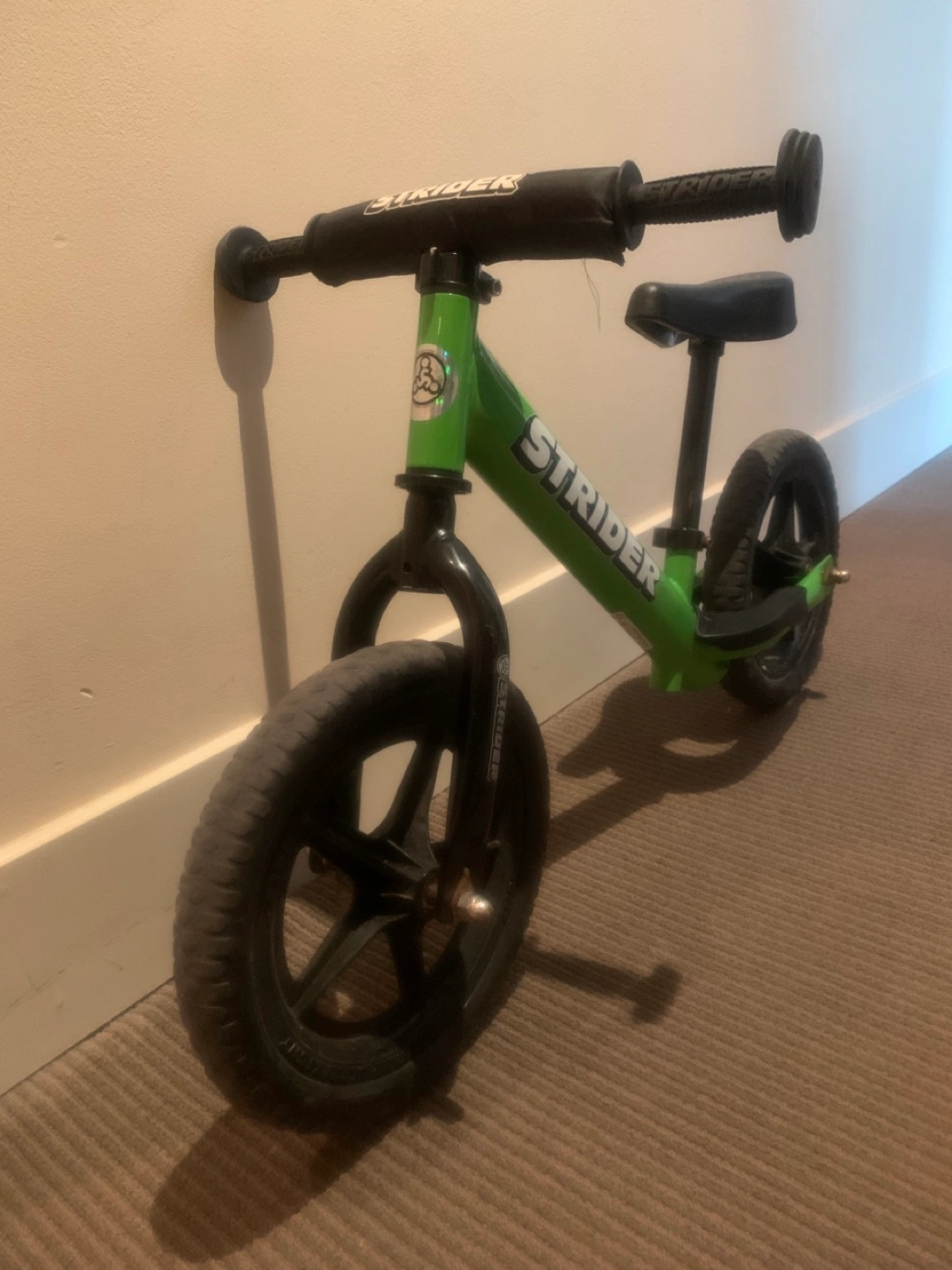 168Strider Sport balance bike. Green frame, black accents. Good condition. Perfect for young riders learning to balance. Pick up at Eglinton Ave east at Bayview.