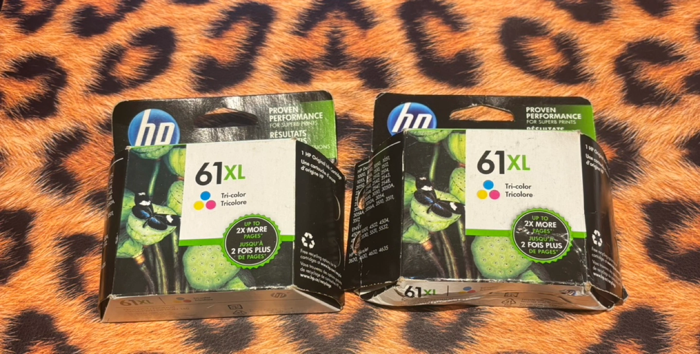 Two brand new HP 61XL tri-colour ink cartridges. Compatible with various HP DeskJet, ENVY, and OfficeJet printer models. See image for compatible printer models.