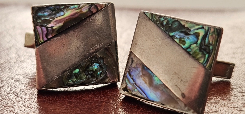 Vintage Alpaca Silver Cufflinks with Abalone Shell