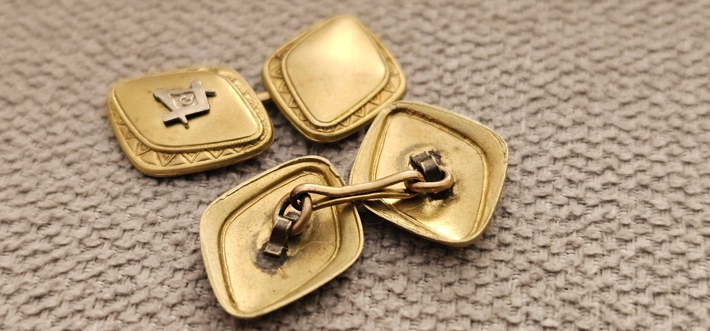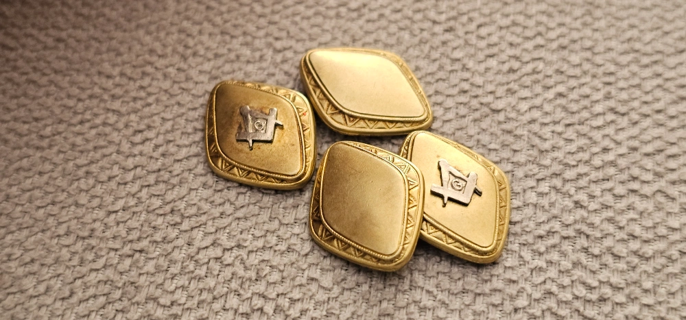 Vintage Masonic Cufflinks Gold-Tone Diamond Shape