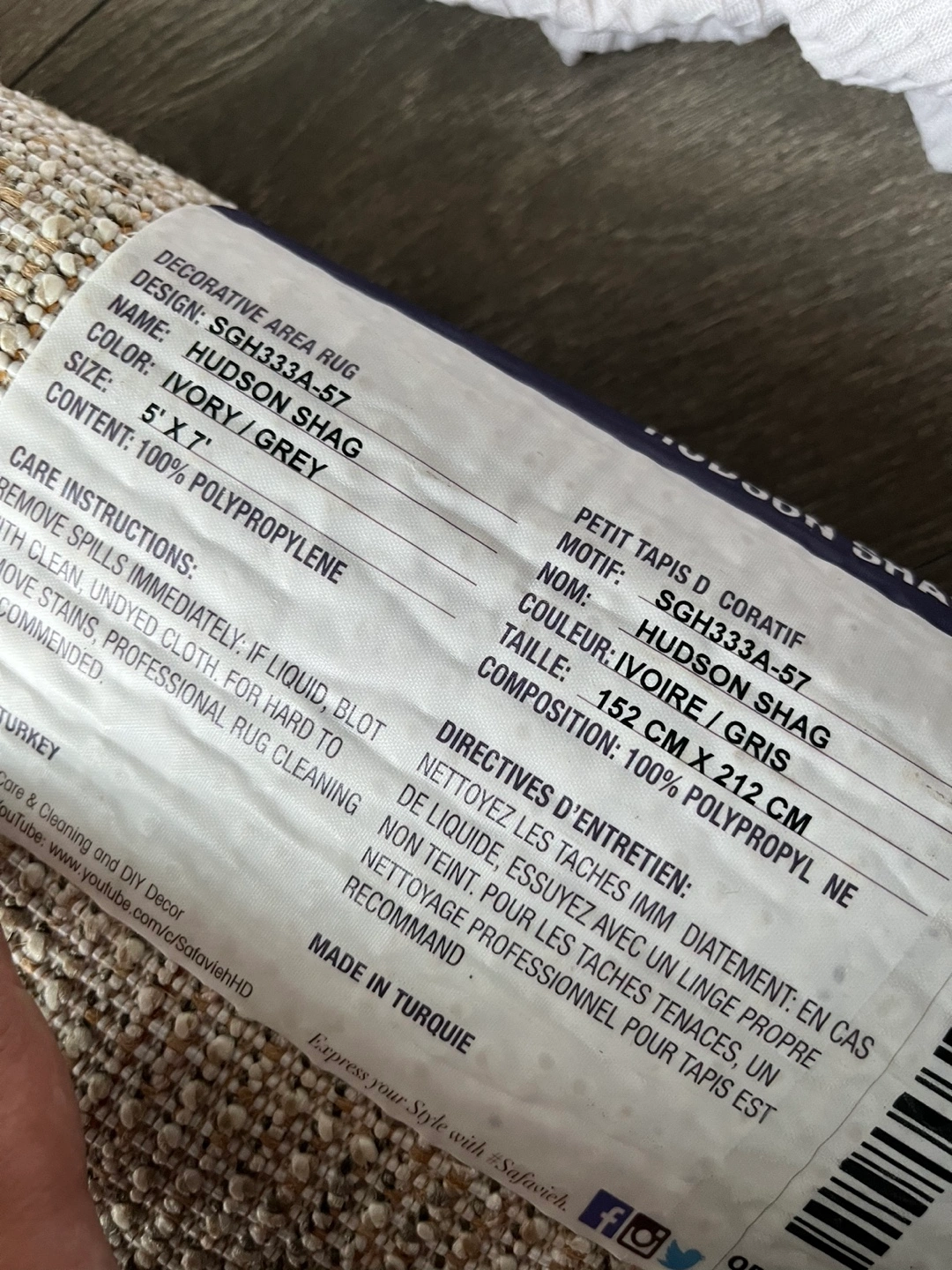 Beautiful Safavieh Hudson Shag premium rug. Ivory and grey colour scheme. Soft and plush. 5' x 7' size. No spills or pets, really good condition and super clean.