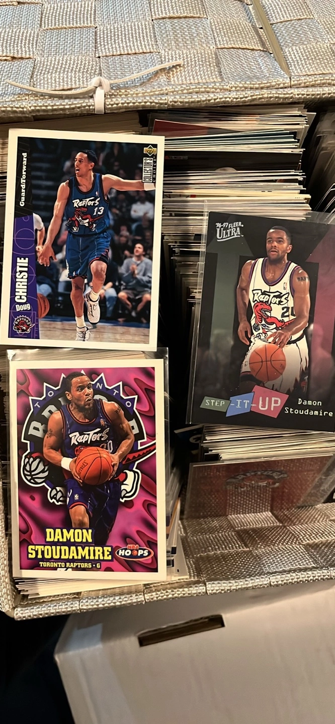 Large collection of various sports cards. Includes many Toronto Raptors and Blue Jays players. Some Leafs in there too!Cards in good condition. Mostly 1990s era. Some modern stuff!