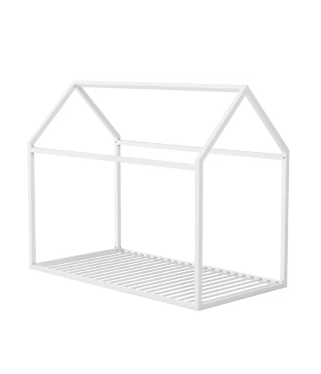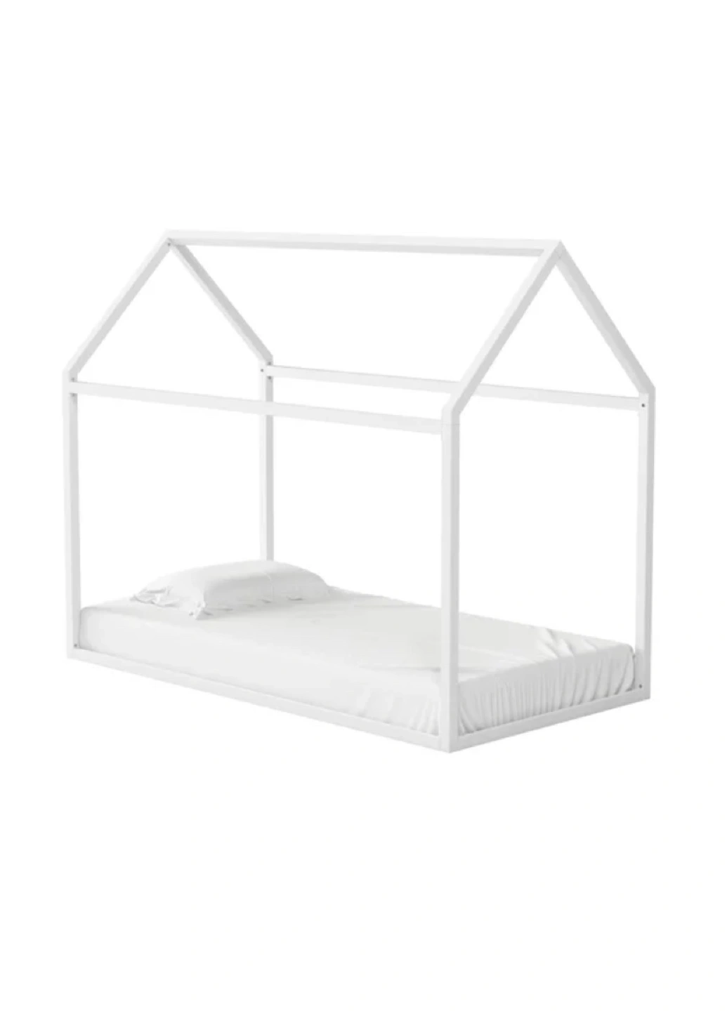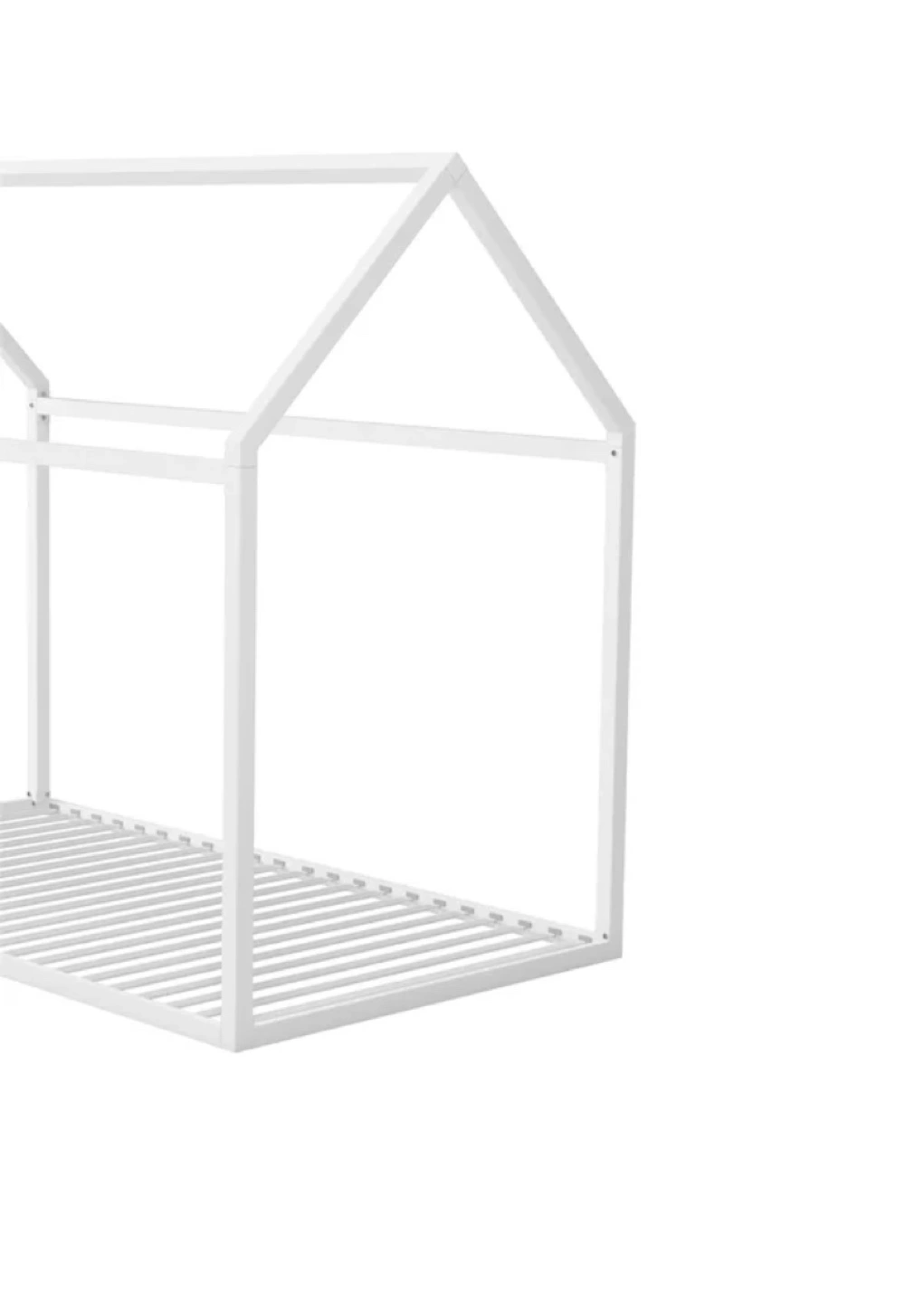 With its sturdy metal frame and safe low profile, this kids' twin floor bed is easy for children to climb in and out of while the canopy frame offers multiple design ideas for you and a fun, imaginative space for your child's sleep and playtime. The House Floor Bed offers metal slats for mattress support, no box springs required, and accommodates a standard-size twin mattress, sold separately.