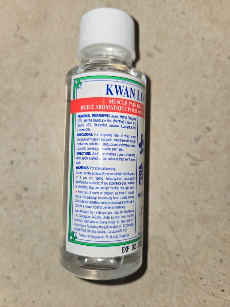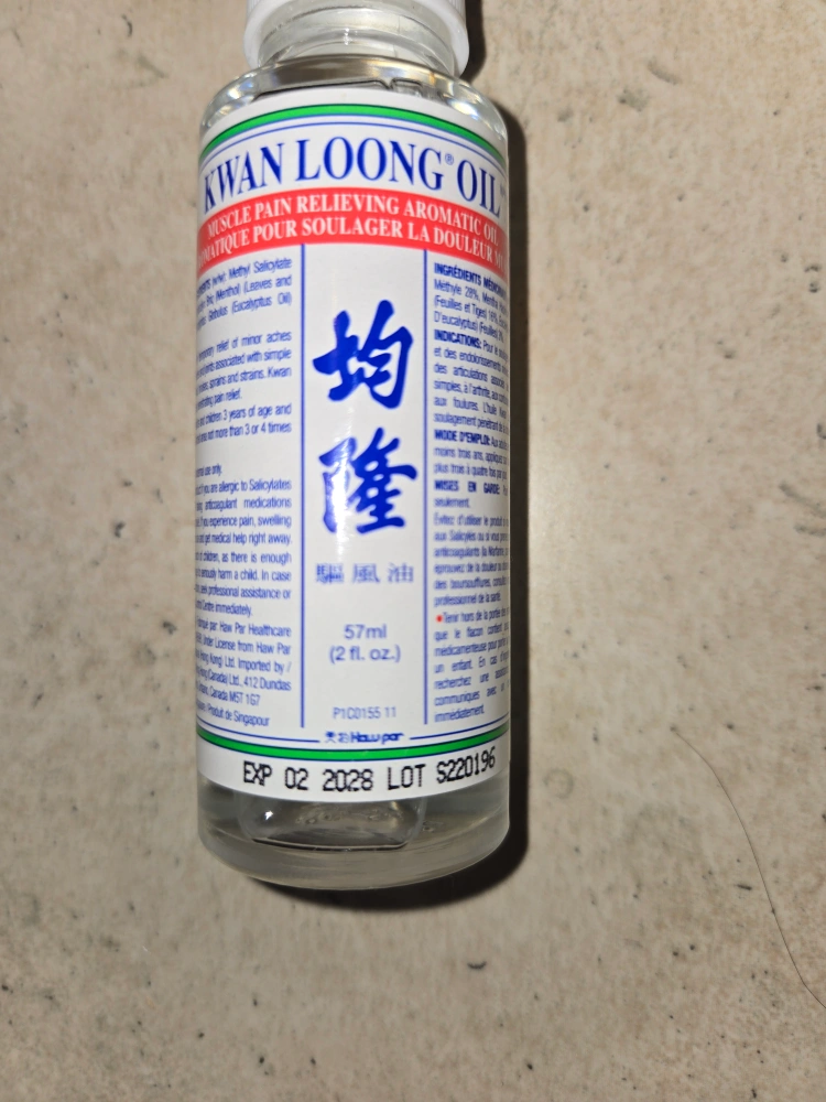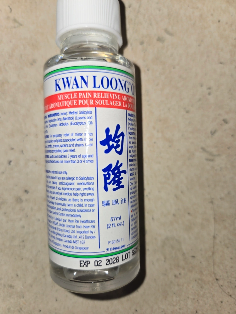 Muscle pain relieving aromatic oil. For temporary relief of minor aches and pains. 57ml bottle. Brand new. Expiry date 02 2028.