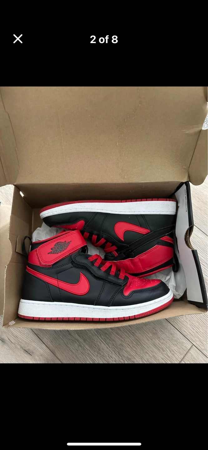 Air Jordan 1 Hi Flyease (GS) sneakers. Black and red colourway. Size 7Y. Comes in original box. Great condition. Worn 4 times