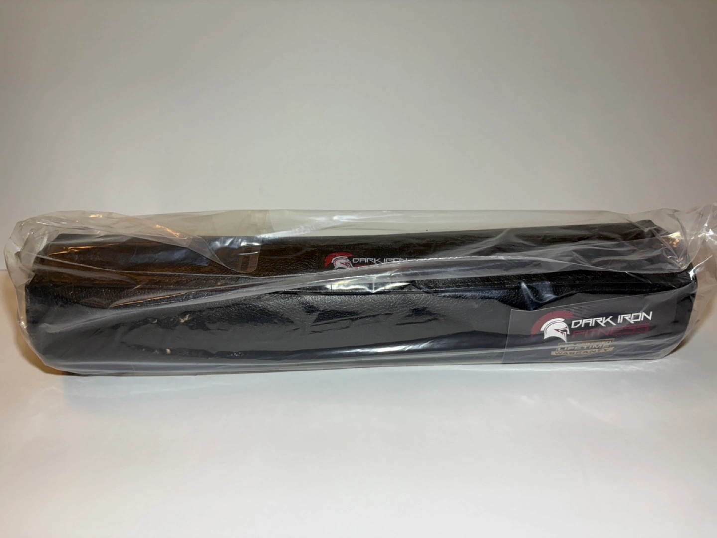 Has a Velcro loop to keep pad secure on the bar. Material is water resistant and easy to wipe off after each workout.