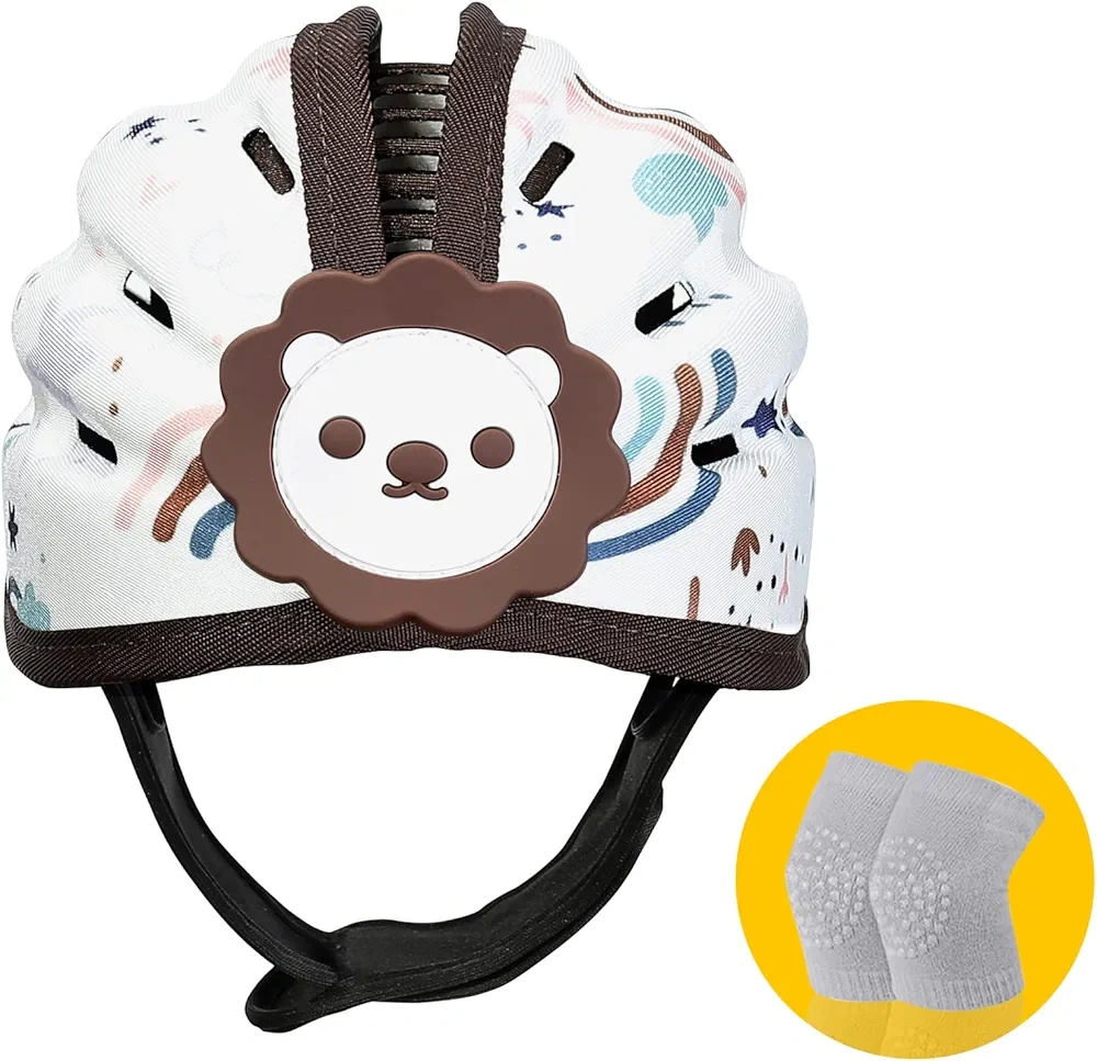 Baby Safety Helmet, Breathable Baby Crawling and Walking Helmet, Toddler Soft Helmet, Anti-Collision, Ultra-Lightweight, Expandable and Adjustable Age 6m-24m (Brown Lion)