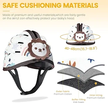 Crafted with 100% cotton for a soft, sweat-absorbent feel, and filled with EVA foam for excellent impact resistance. It helps protect your baby from falls and hard object collisions.