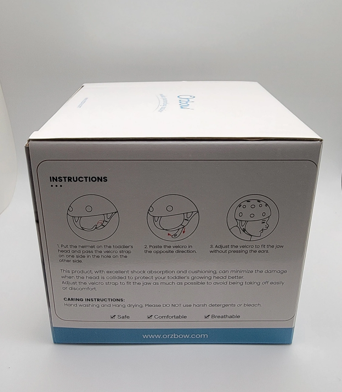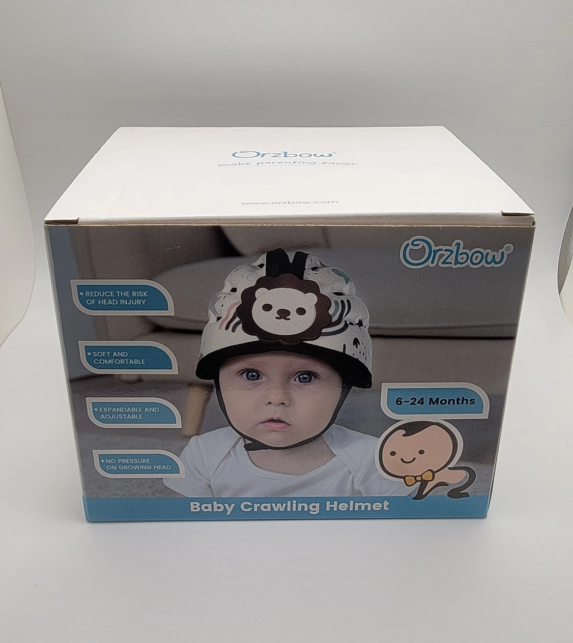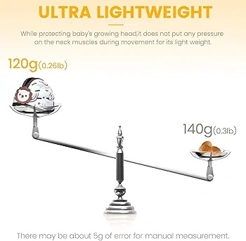 The Orzbow Baby Safety Helmet is ultra-lightweight at just 120g (0.264 lbs) and designed for toddlers aged 6-24 months with a head circumference of 40-48 cm (15.7-18.9 in).