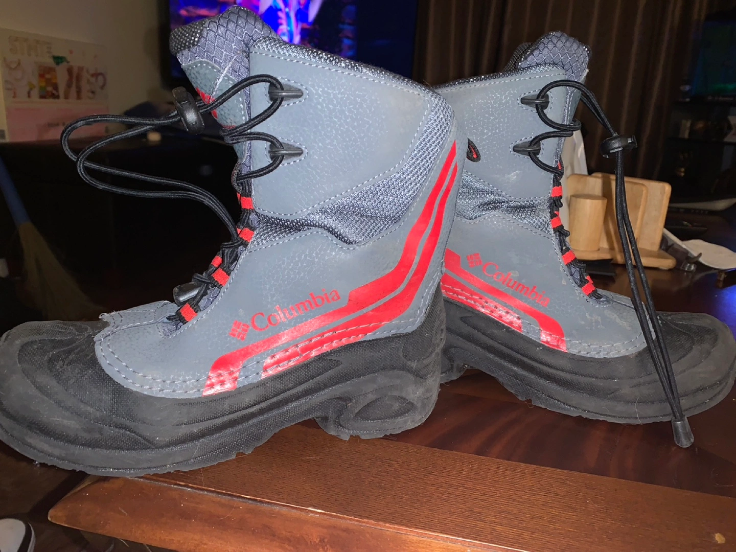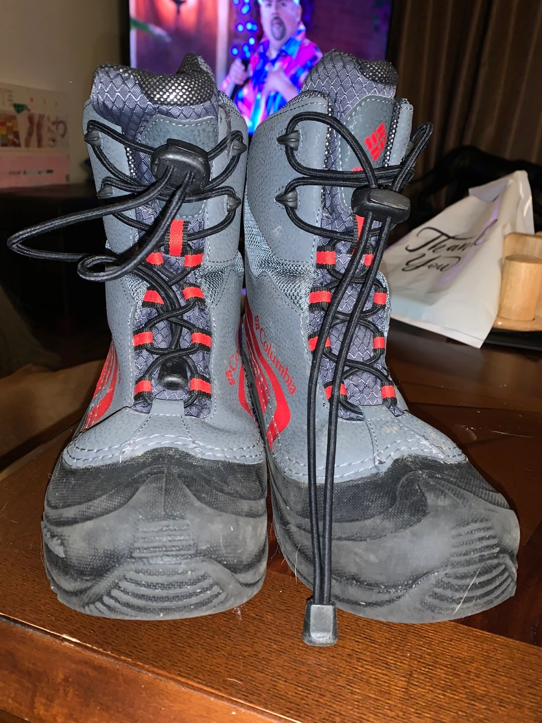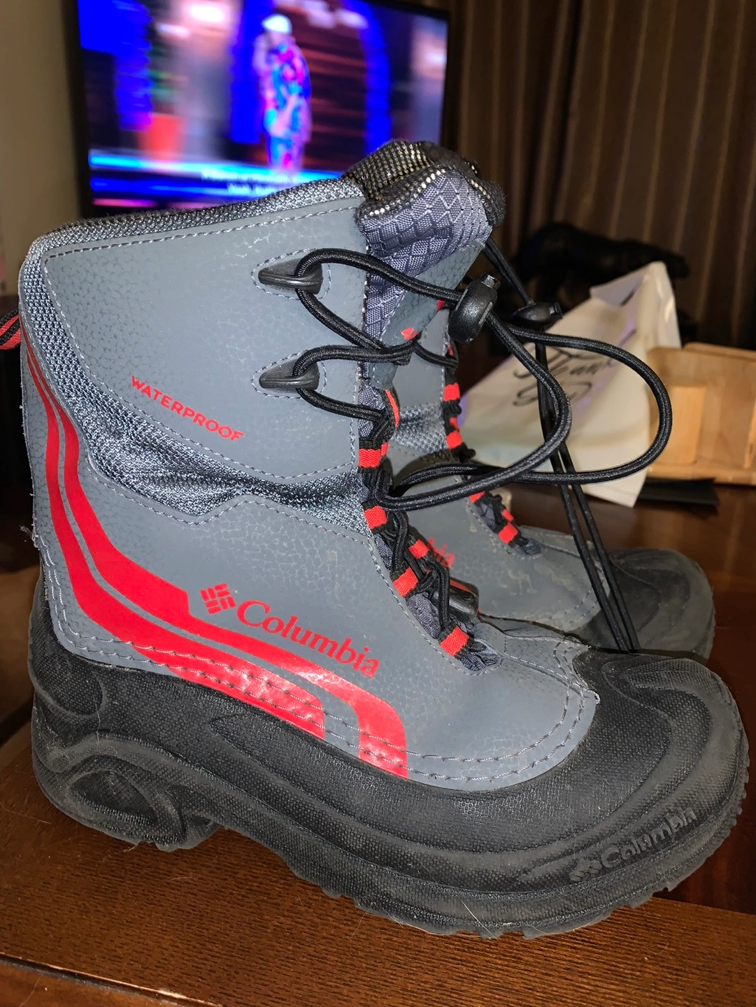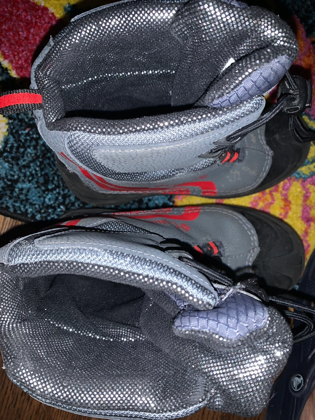Grey and red waterproof winter boots. Lace-up closure. Good for snow and ice. Almost like new, never worn. Cash pickup only.