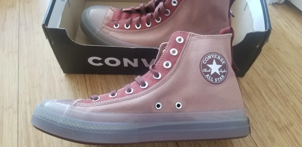 Brand new Converse Chuck Taylor All Star high top sneakers. Size 10.5 men's. Dusty rose colour with translucent outsole. Comes in original box (without cover).