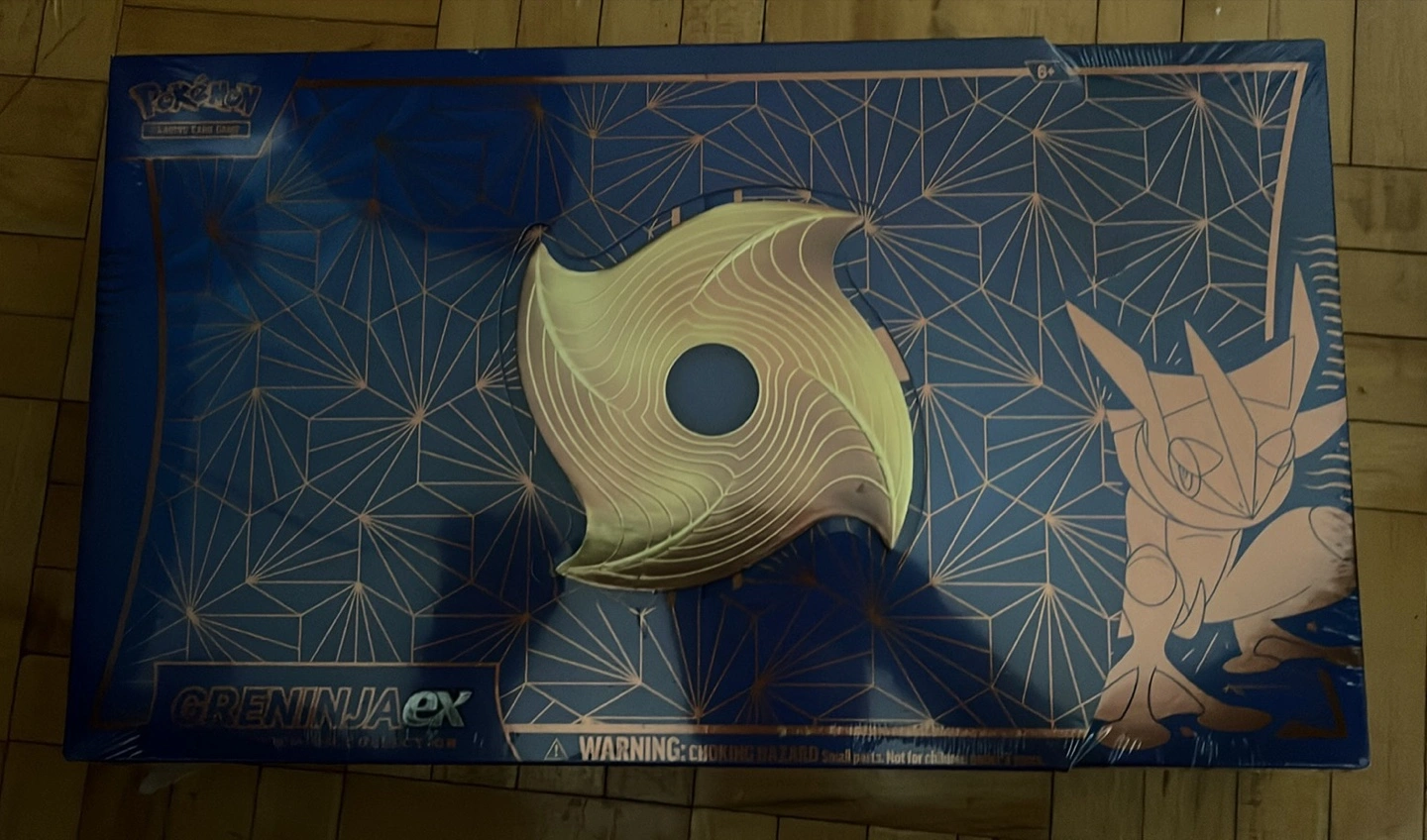 Sealed Greninja ex Ultra Premium Collection. Includes metallic cards, damage counters, and Pokemon TCG packs. Collectible box featuring Greninja artwork.