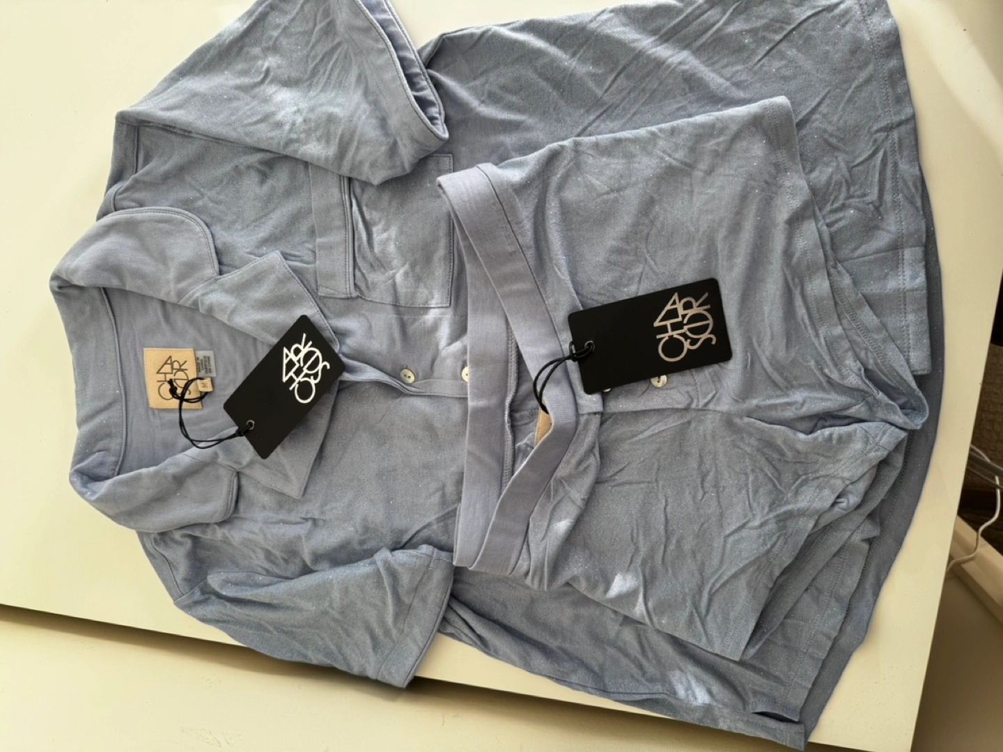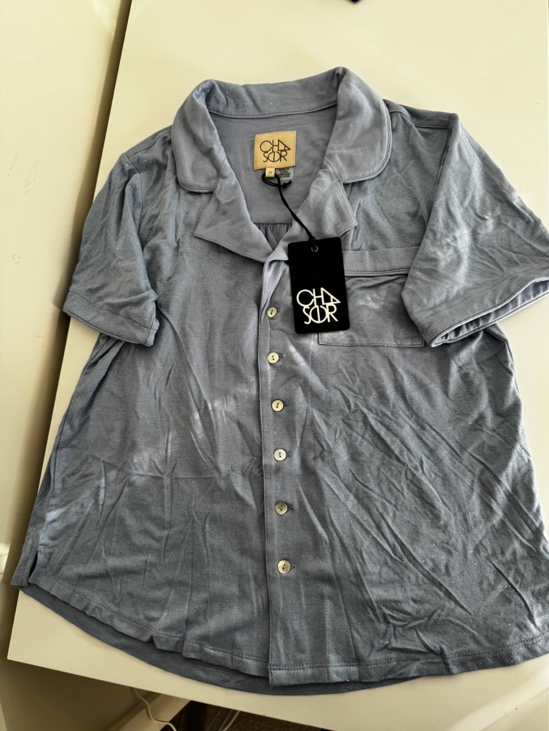 Gorgeous light blue loungewear set. Short-sleeved collared shirt and coordinating shorts. Button closures. Brand new with tags. Never worn or tried on.