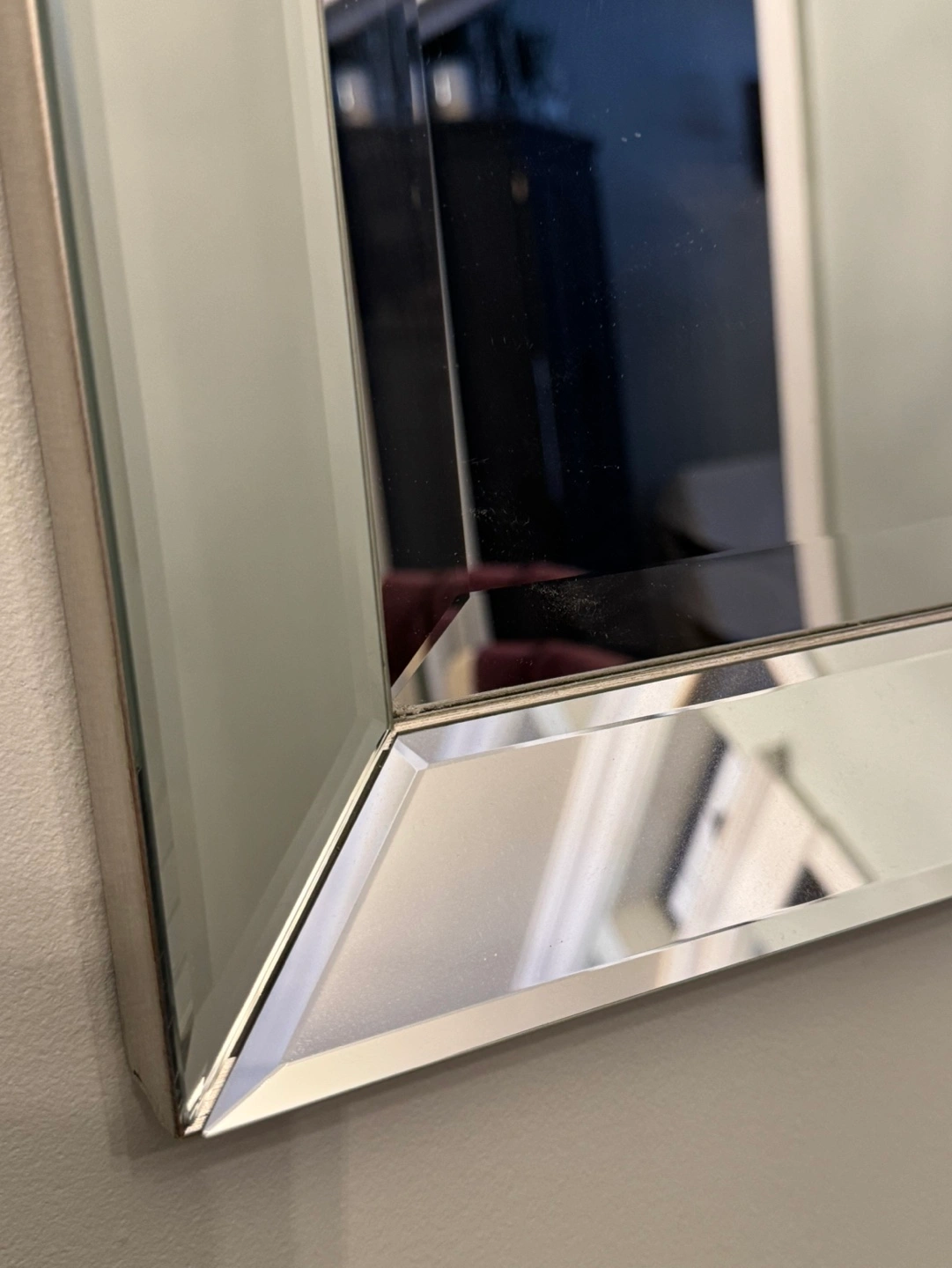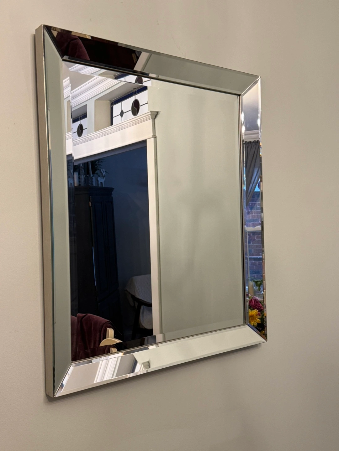 A mirror that goes with every style. Timeless beveled framed mirror. See dimensions for size, perfect for a hallway, bathroom or living room. No scratches or damage.