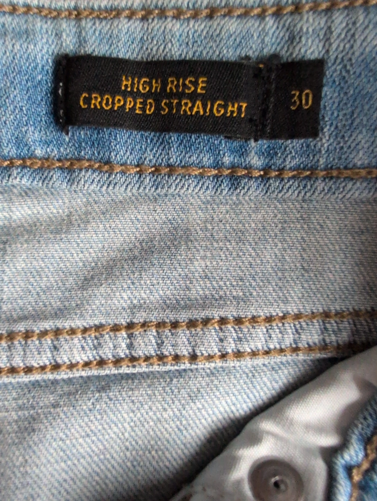 982Light wash denim. High rise cropped straight leg jeans. Size 30. Good condition.