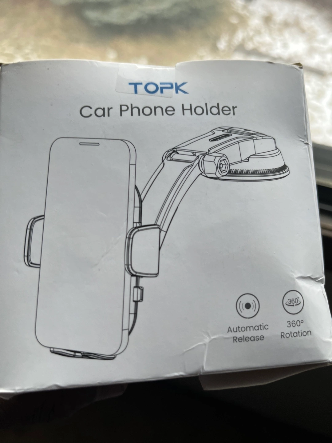 New TOPK car phone holder. Automatic release. 360° rotation. Mounts to your windshield or dashboard.