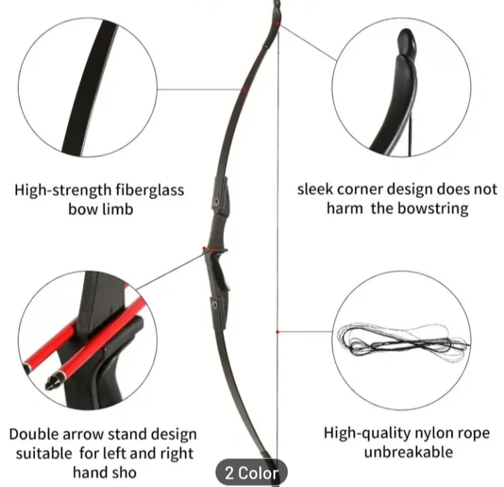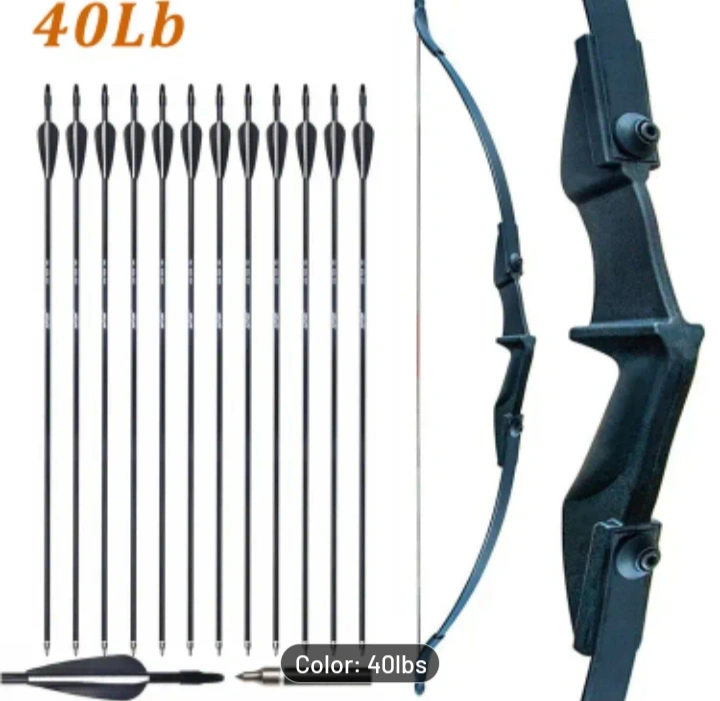 Selling a 40lb recurve bow, complete with arrows! The arrows are made with fiberglass shafts, and the bow features a high-strength fiberglass bow limb and a high-quality nylon rope for the bowstring