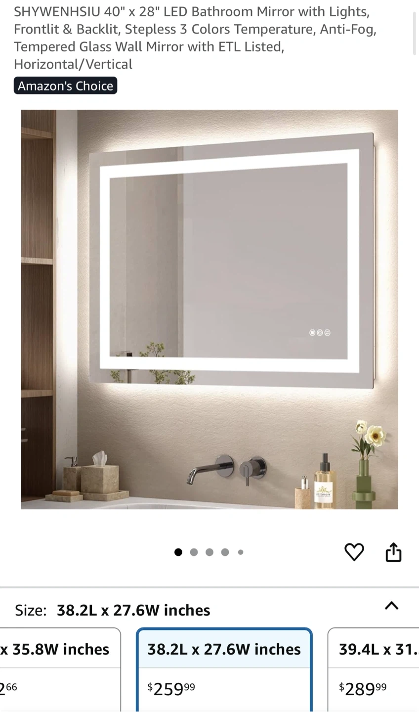 Selling a LED bathroom mirror. It features front and back lighting, stepless 3 colour temperature, and anti-fog. It's a tempered glass wall mirror. Dimensions are 38.2L x 27.6W inches. Originally $259.99 but selling brand new in box for $200 OBO as it’s too big for our space