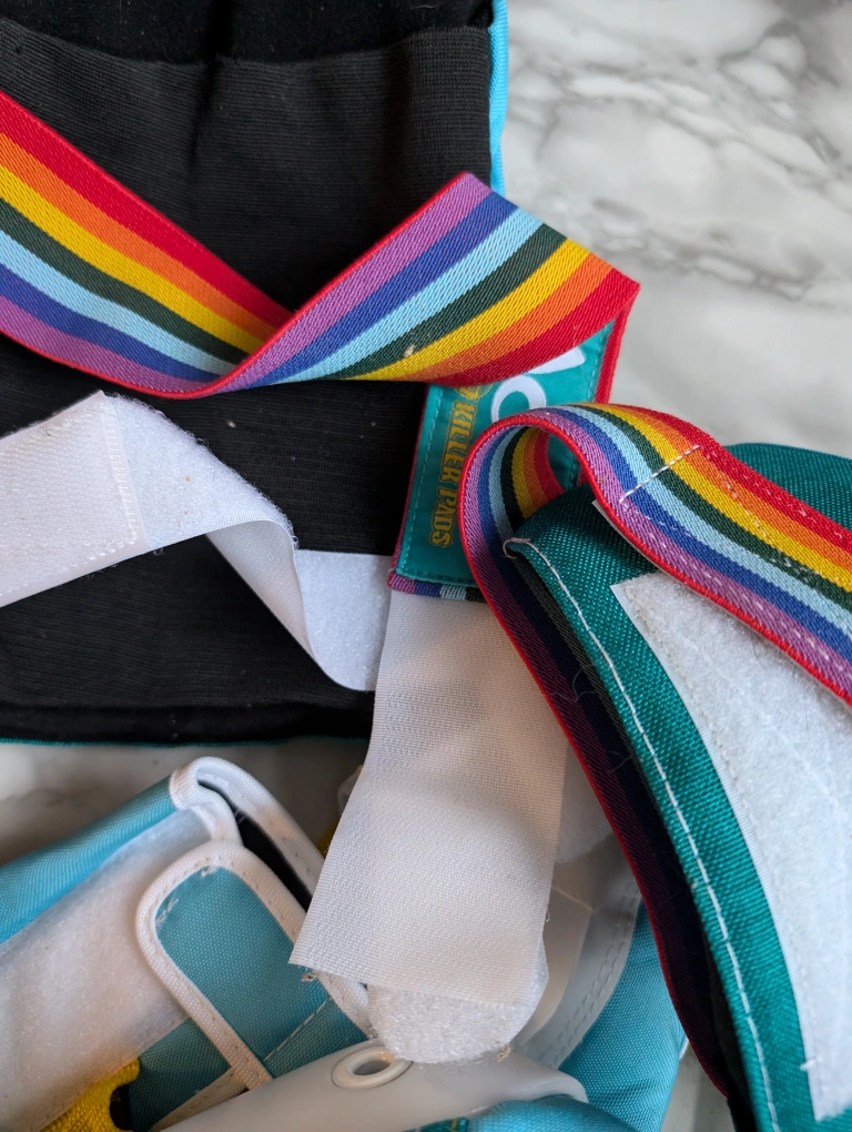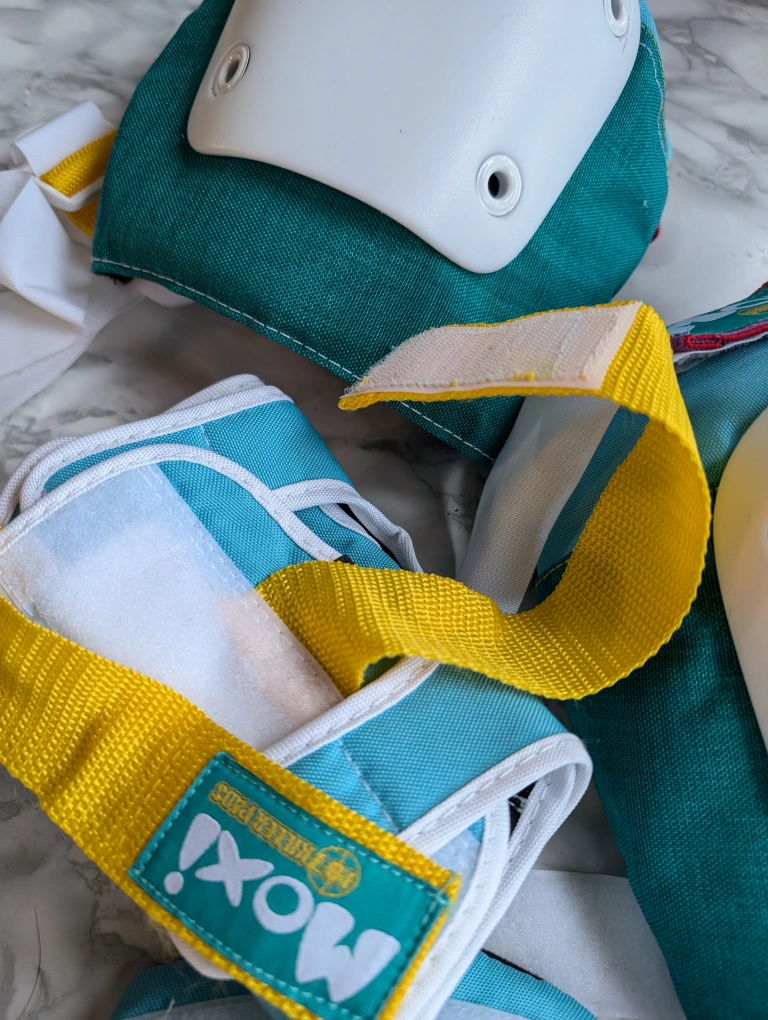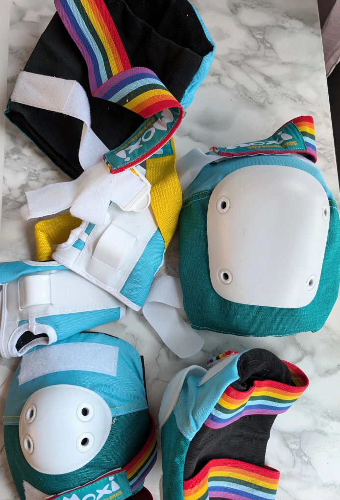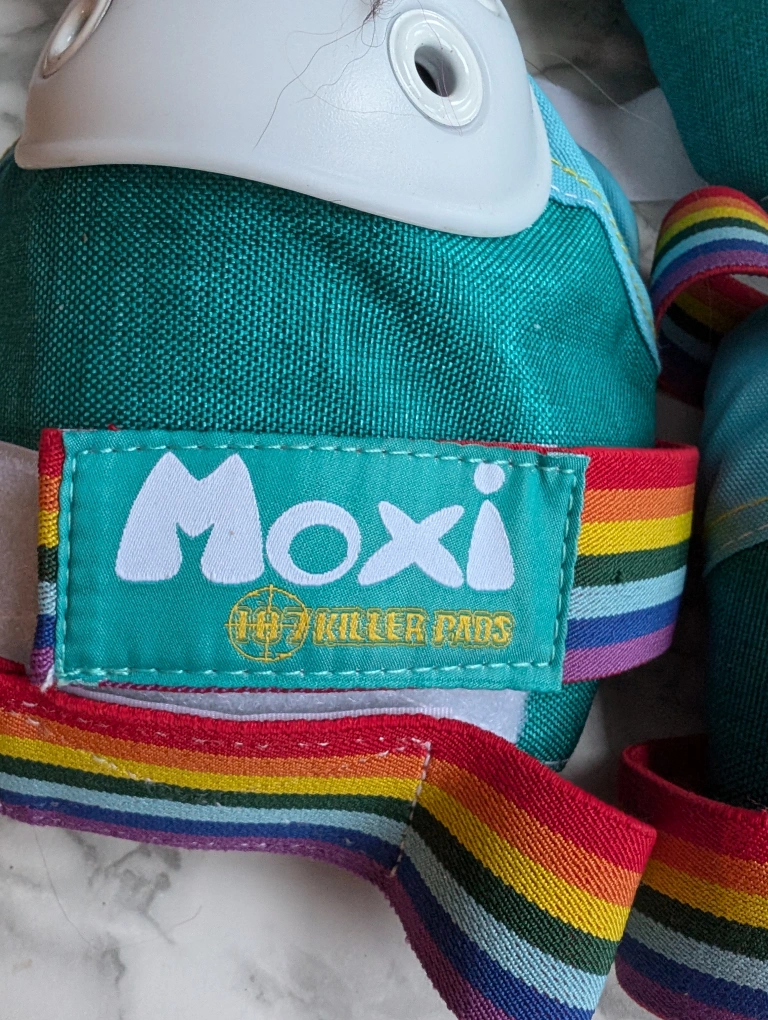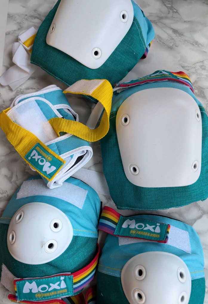 157Complete set of Moxi Killer Pads size XXL Includes elbow and knee pads. Teal and rainbow coloured straps. Great for roller skating. Knee pads, elbow pads, wrist Excellent condition Can meet if not too far