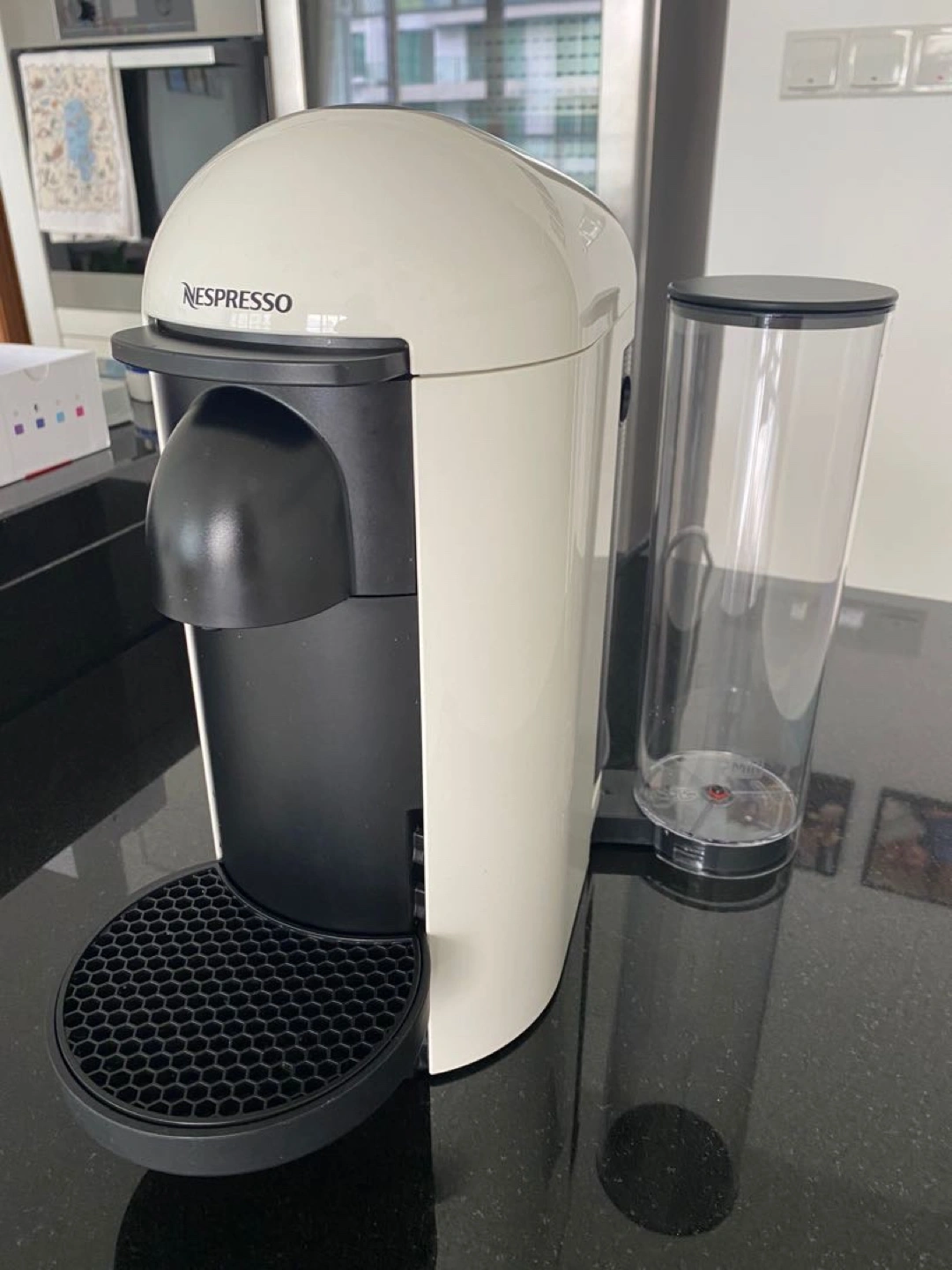 Compact capsule coffee machine. Pretty and aesthetic white and black colour scheme. Used several times but almost brand new condition. Pick up location is north york.
