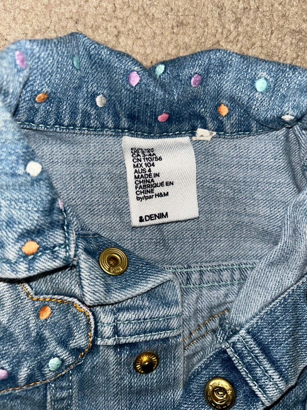 H&M Light wash denim vest. Features colourful polka dots and heart appliqués. Worn only a couple of times.