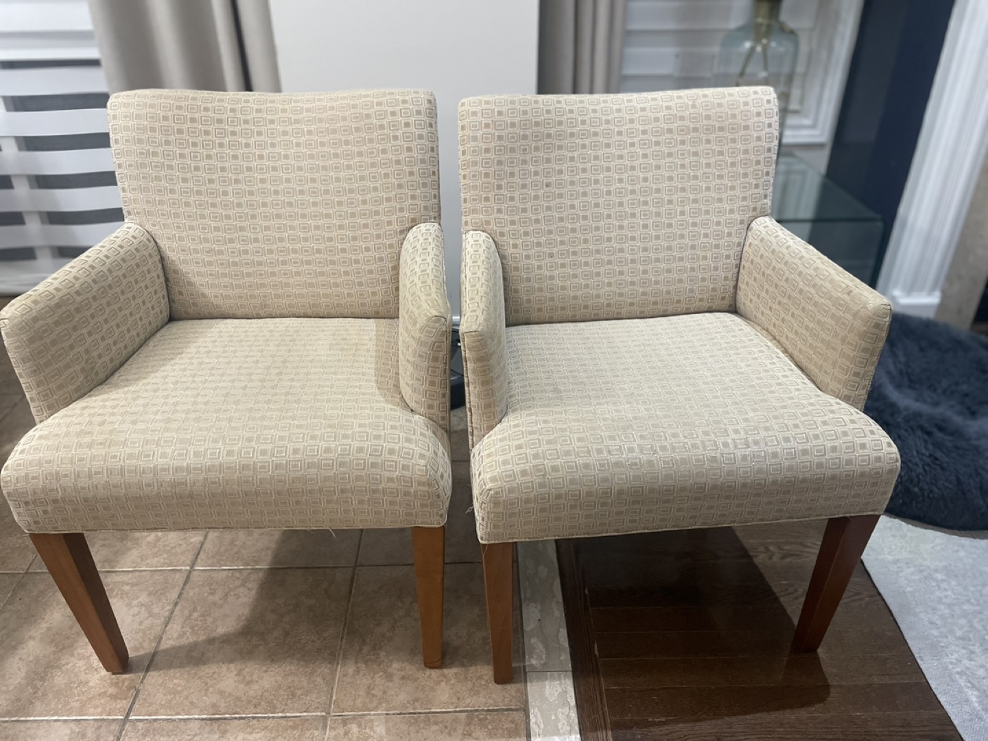 1 / 11 / 1Buy & SellPair of Beige ArmchairsPair of Beige Armchairs$80Two beige armchairs, wooden legs, fabric upholstery. Geometric pattern. Good condition.WHERE TO MEETVictoria ManorView MapSELLERElsochicMarkham Cathedral845 reviews2 chats·1 favorites·228 viewsSEND CHAT TO SELLERHi Elsochic! I’m interested in your listing.Hi Elsochic! I’m interested in your listing.Get the Karrot app to chatSign In to chat