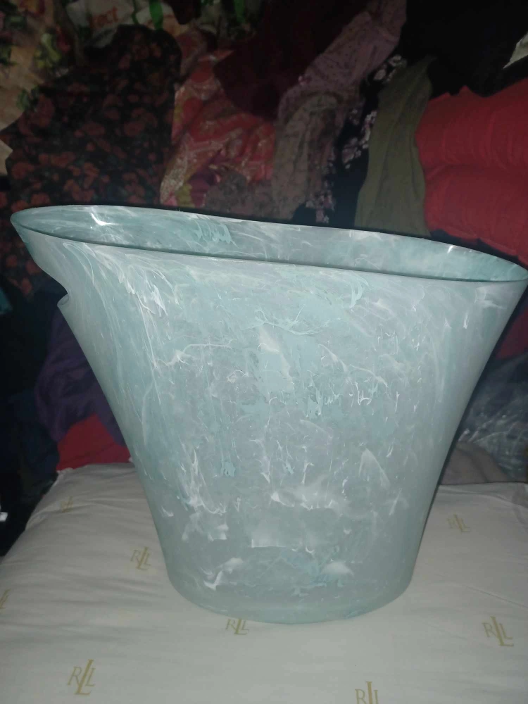 White Planter with Wood Stand