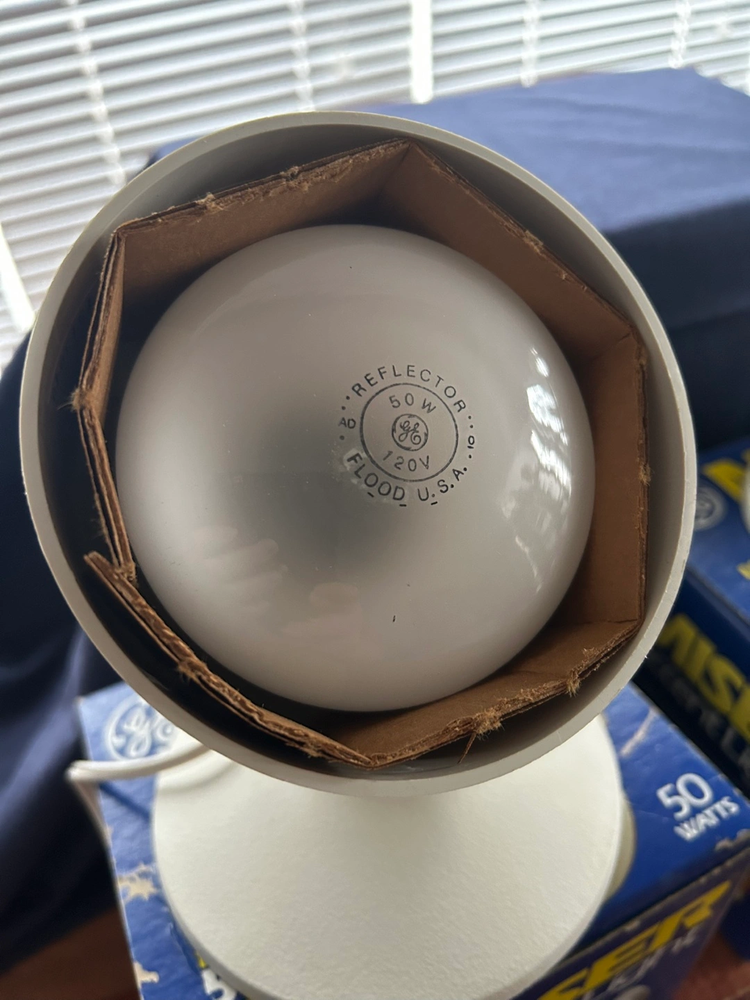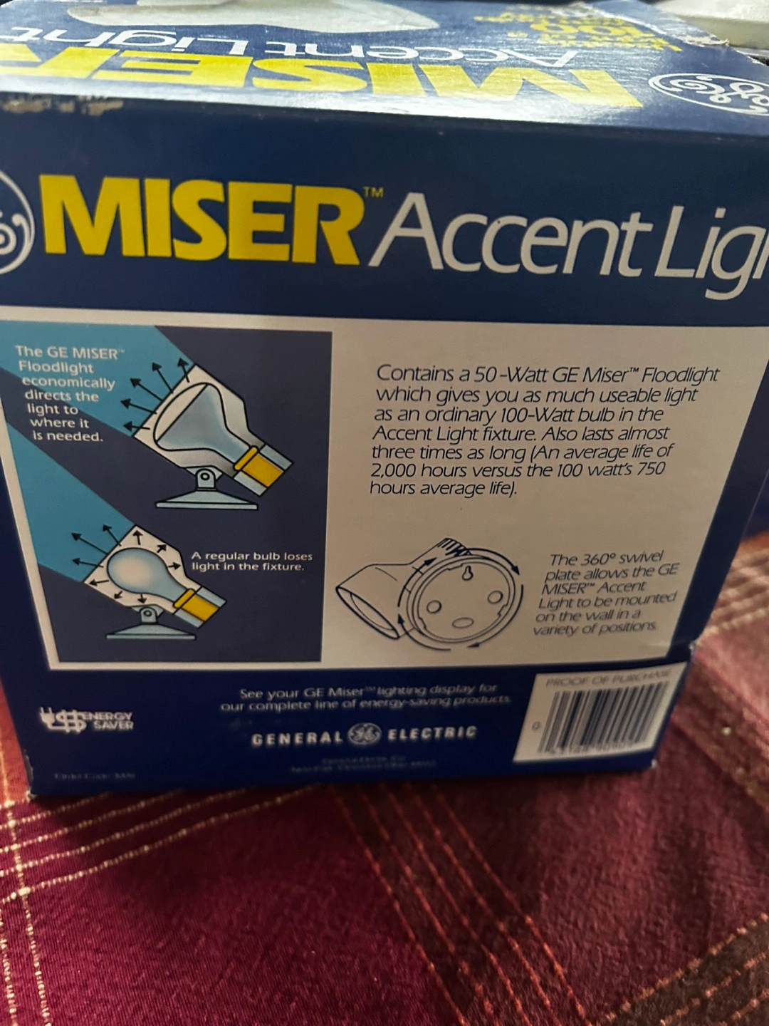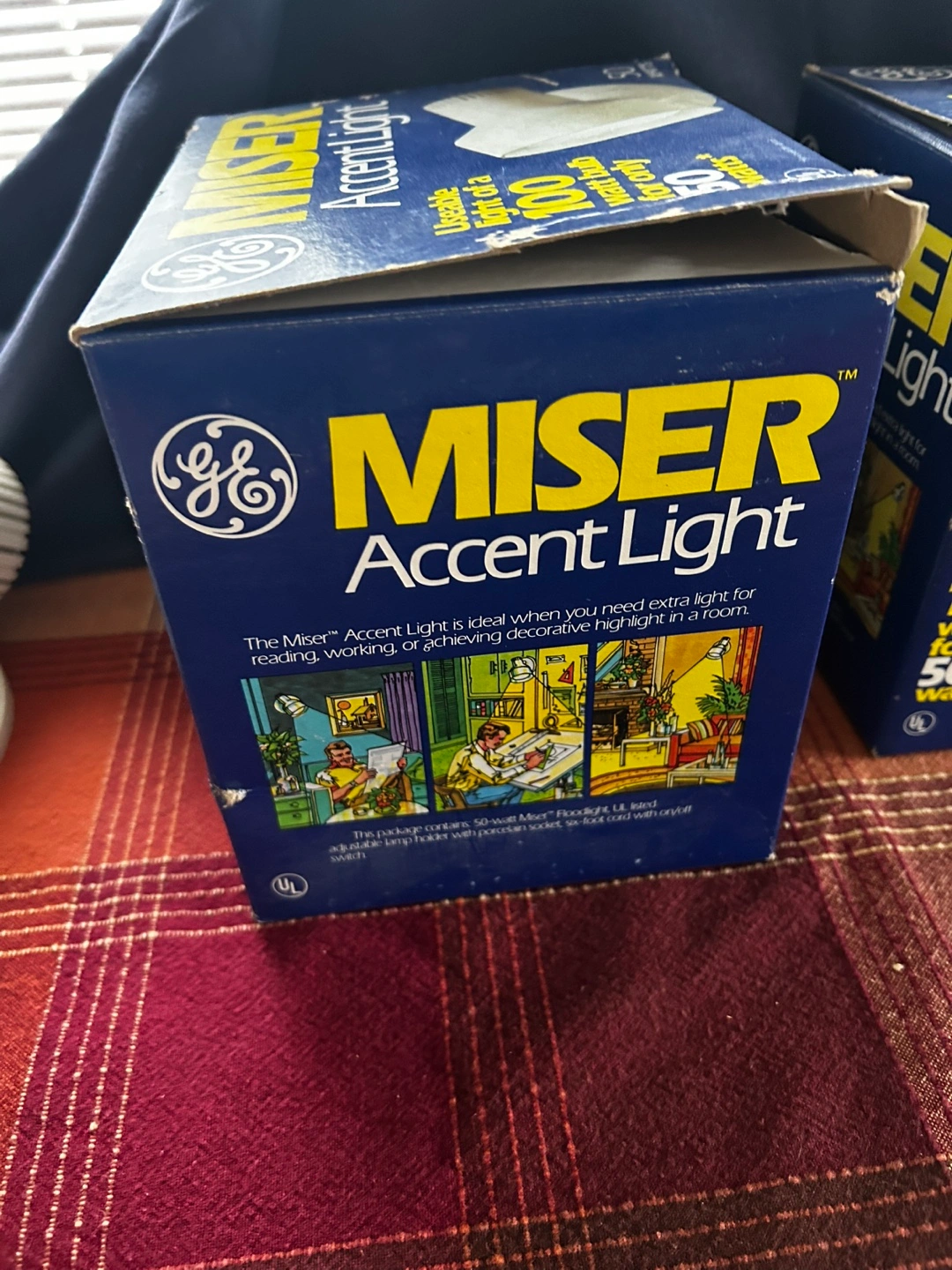 Pair of vintage General Electric Miser Accent Lights. 50-watt floodlights. In original boxes. Great for reading or task lighting.
