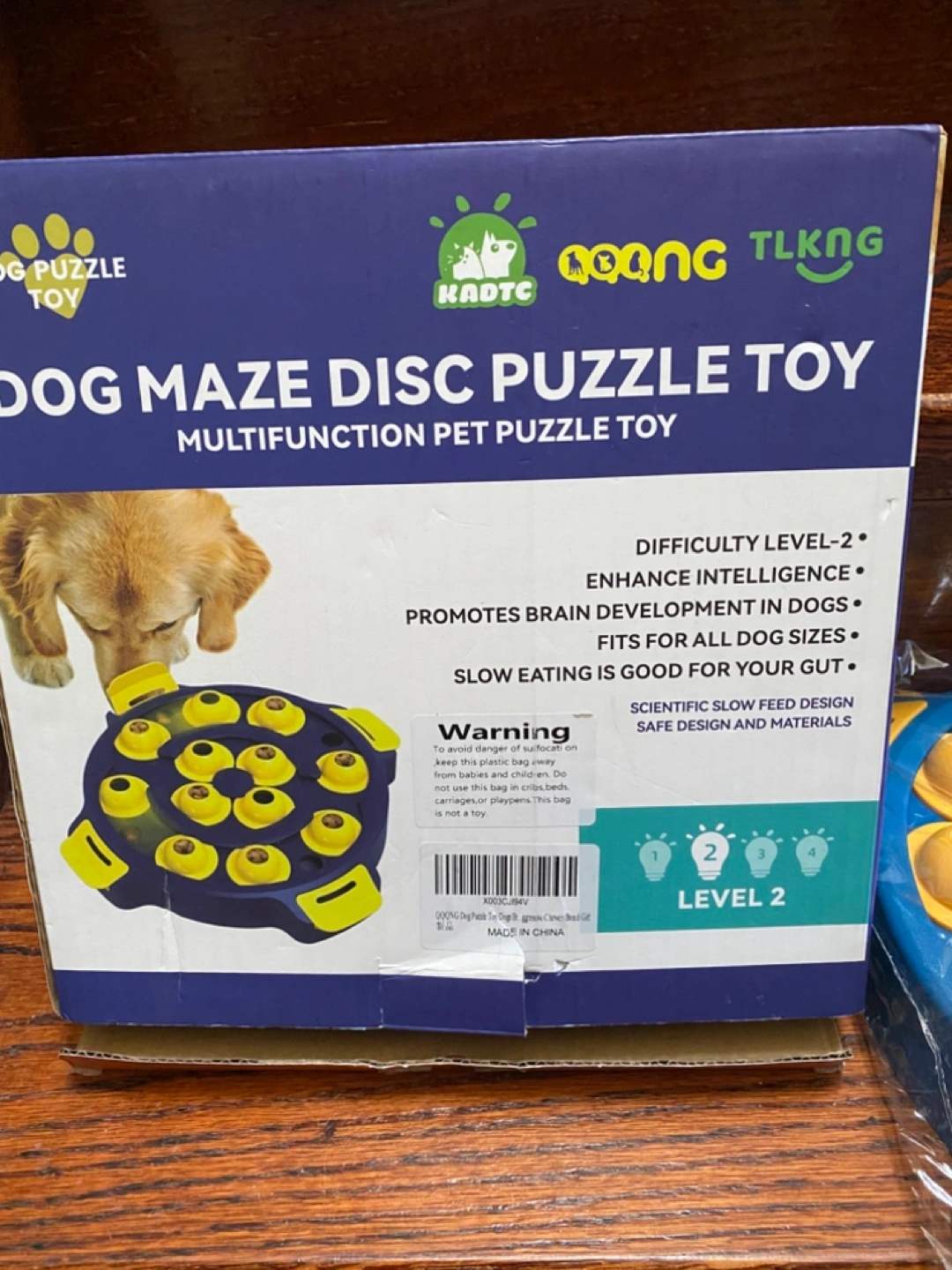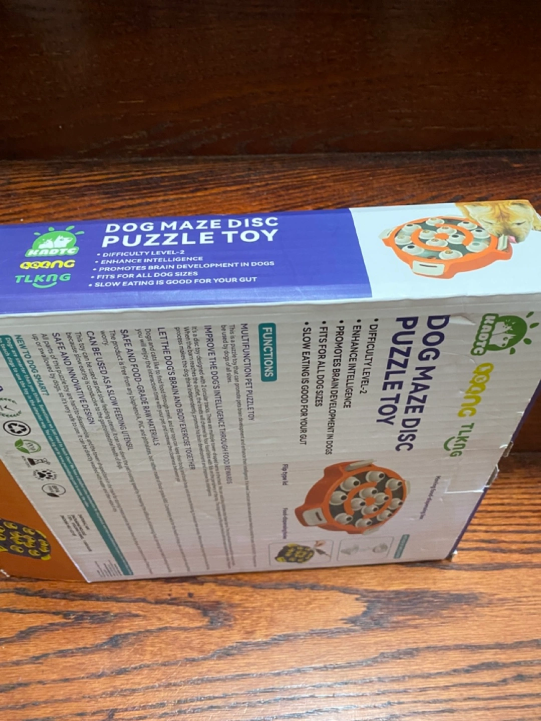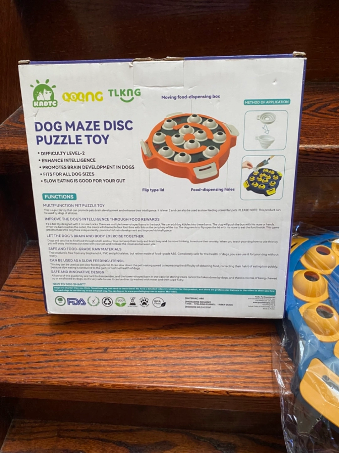 Brand new dog puzzle toy. Difficulty level 2. Enhances intelligence and promotes brain development. Suitable for all dog sizes. Slow feeder, good for gut health. Safe design and materials. Includes moving food-dispensing box. Cash Only